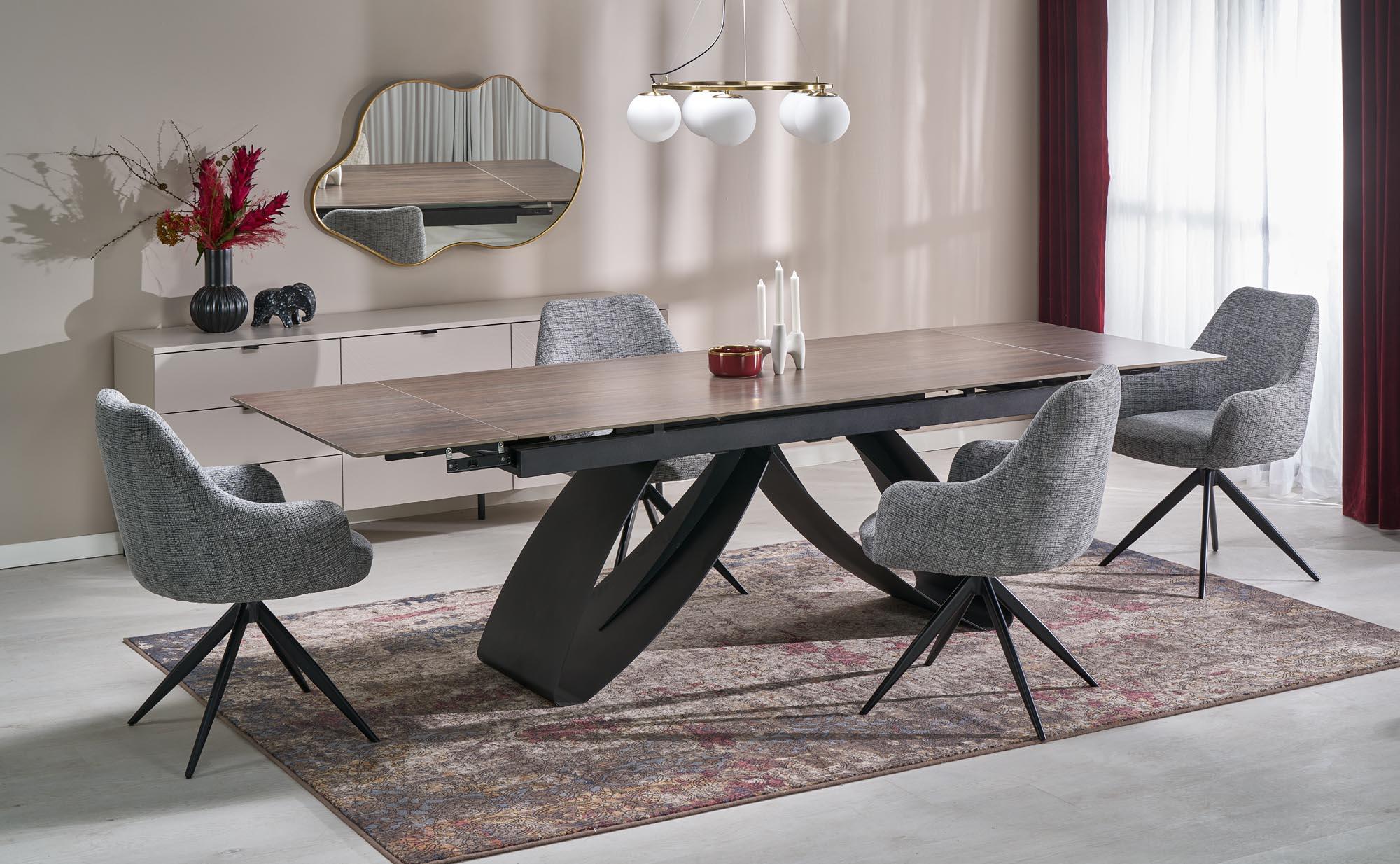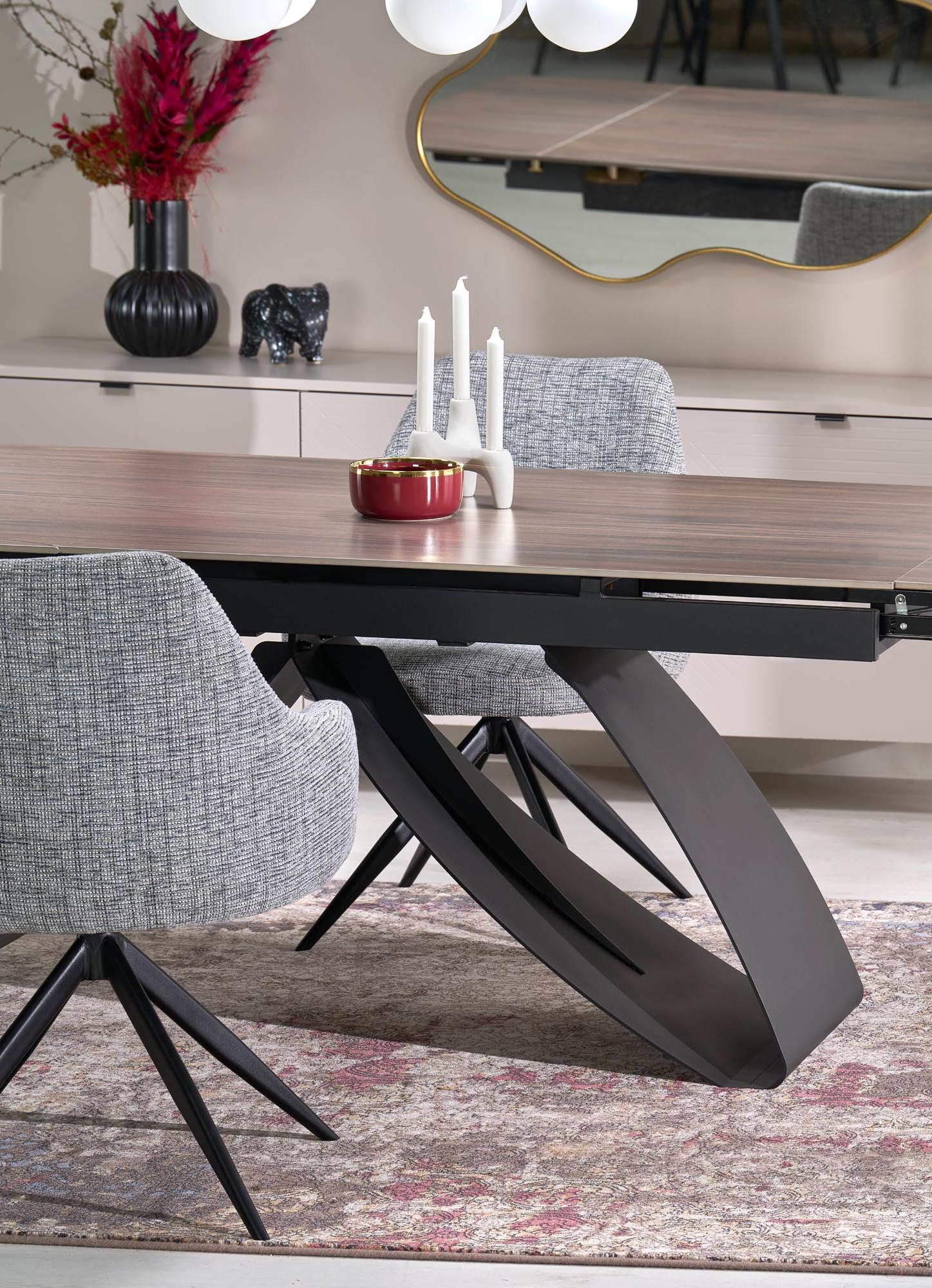 Krzesło do salonu z podstawą w kształcie podkowy i tapicerką ciemno -popielatą