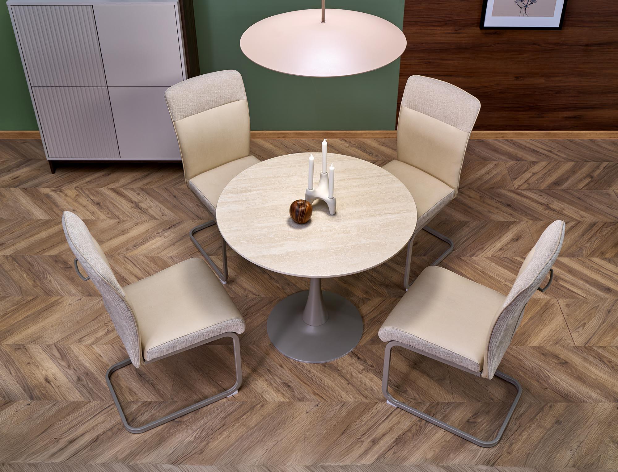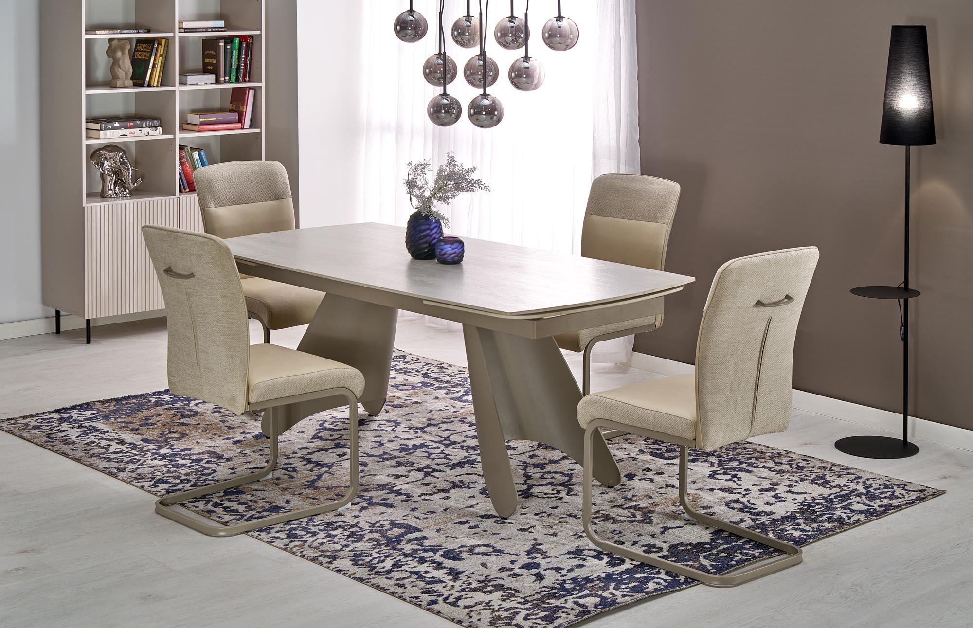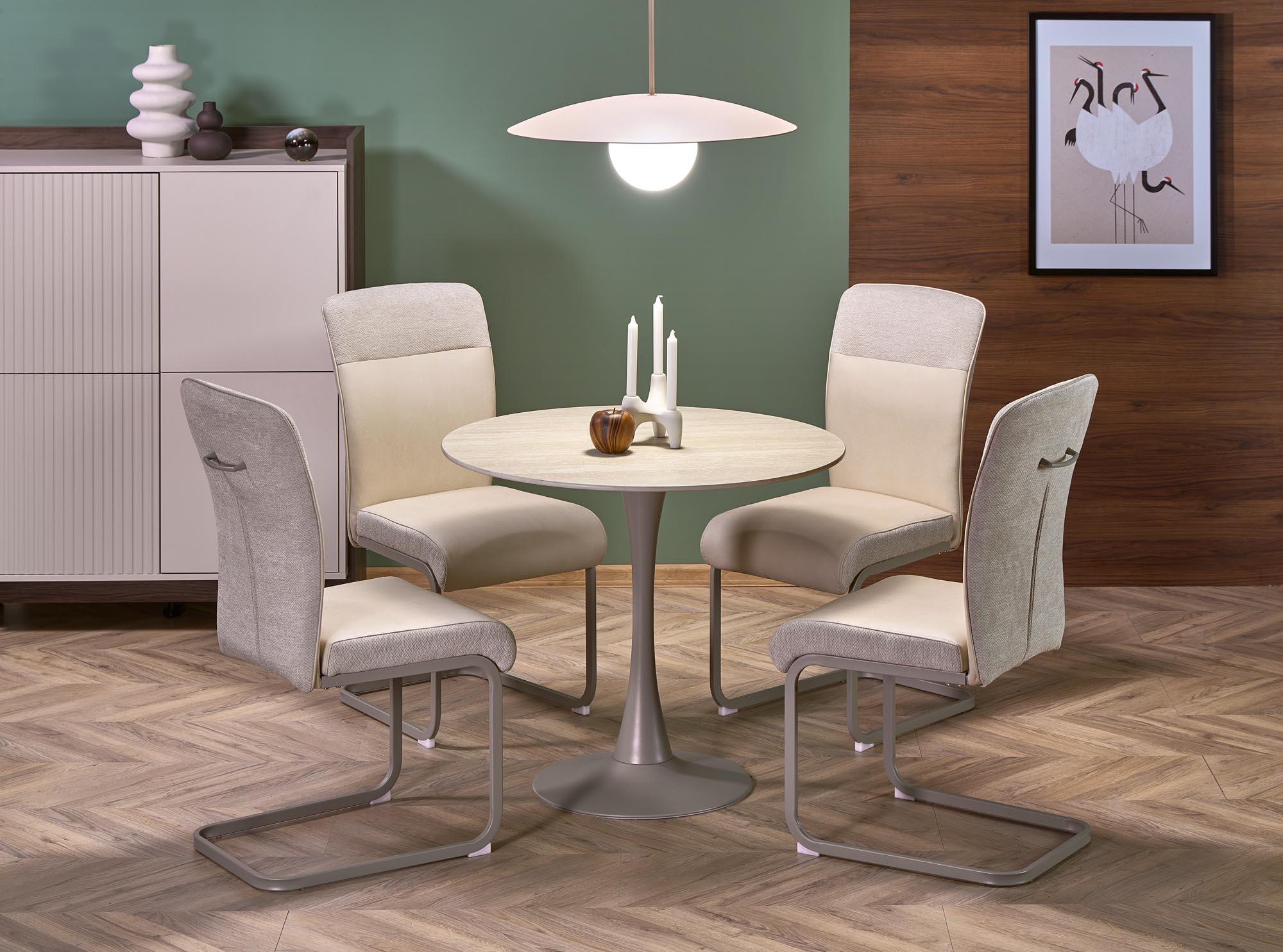 Krzesło wykonano z materiału: tkanina / eco skóra / stal malowana proszkowo, kolor beżowy - kaszmir