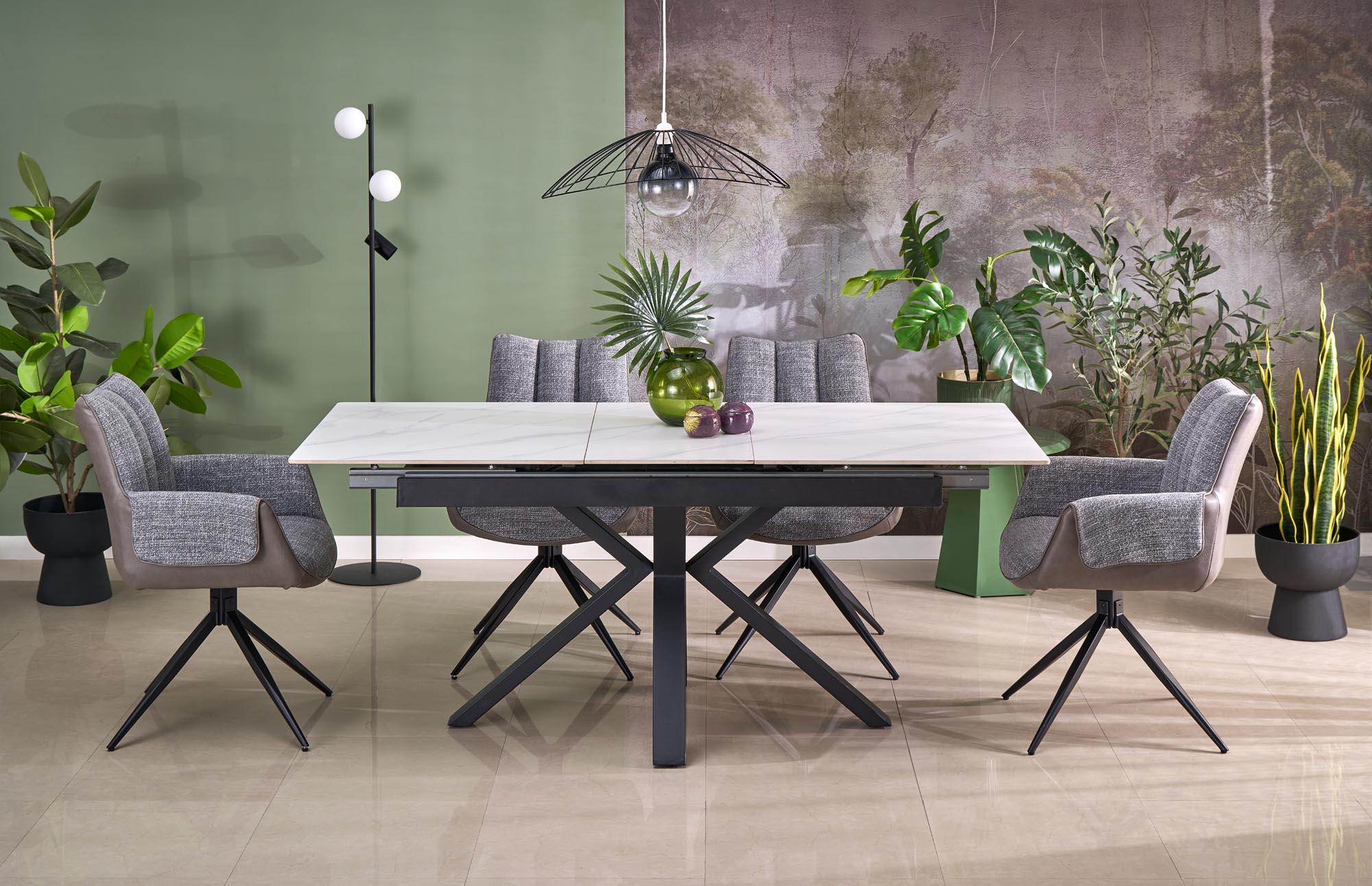 Krzesło wykonano z materiału: tkanina / eco skóra / stal malowana proszkowo, kolor popielaty