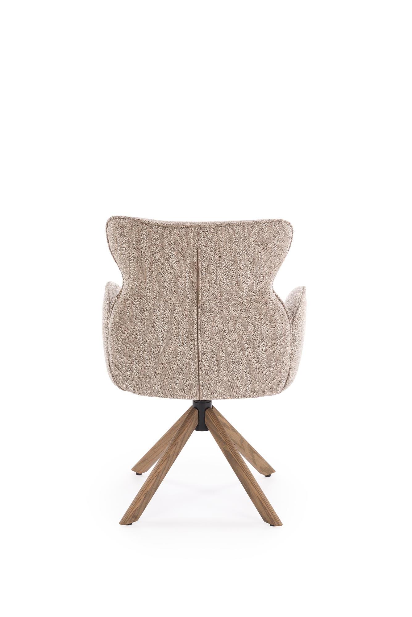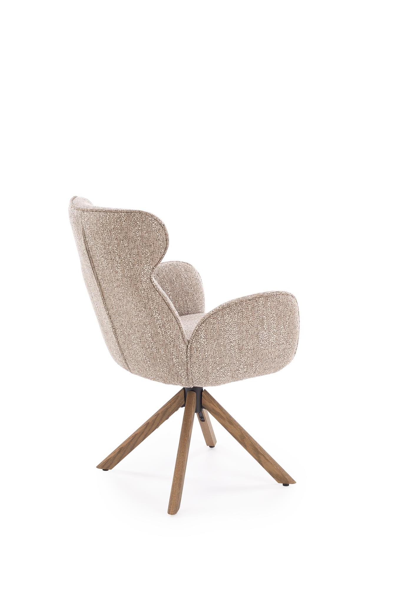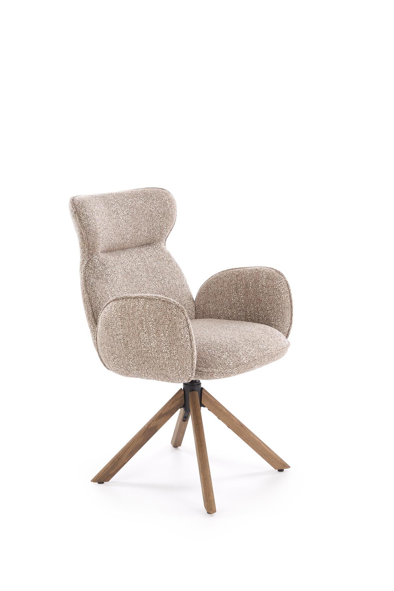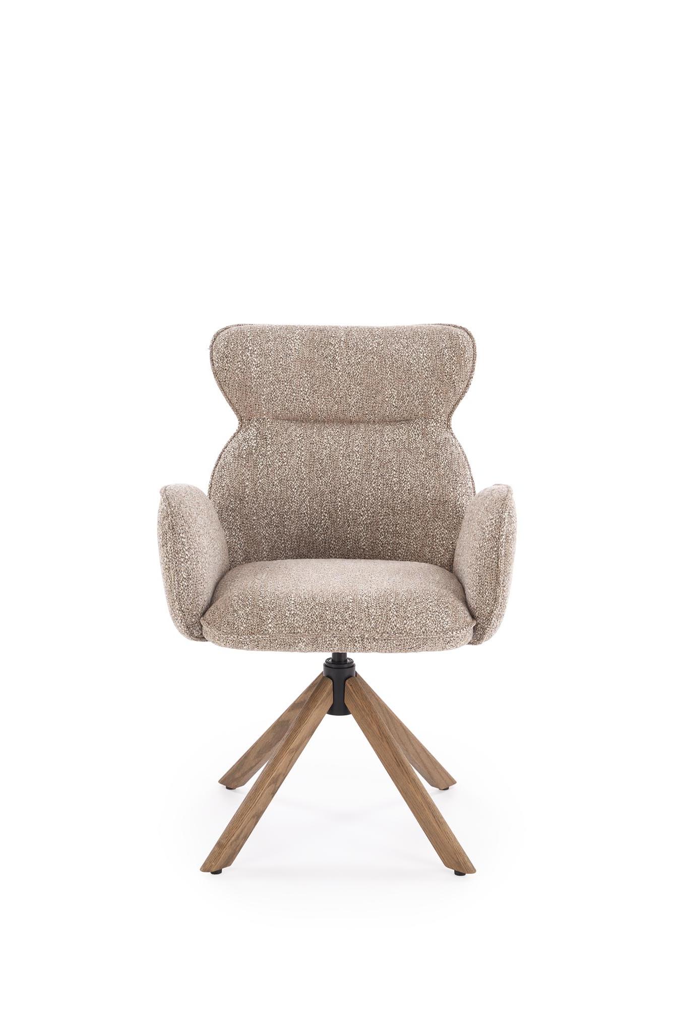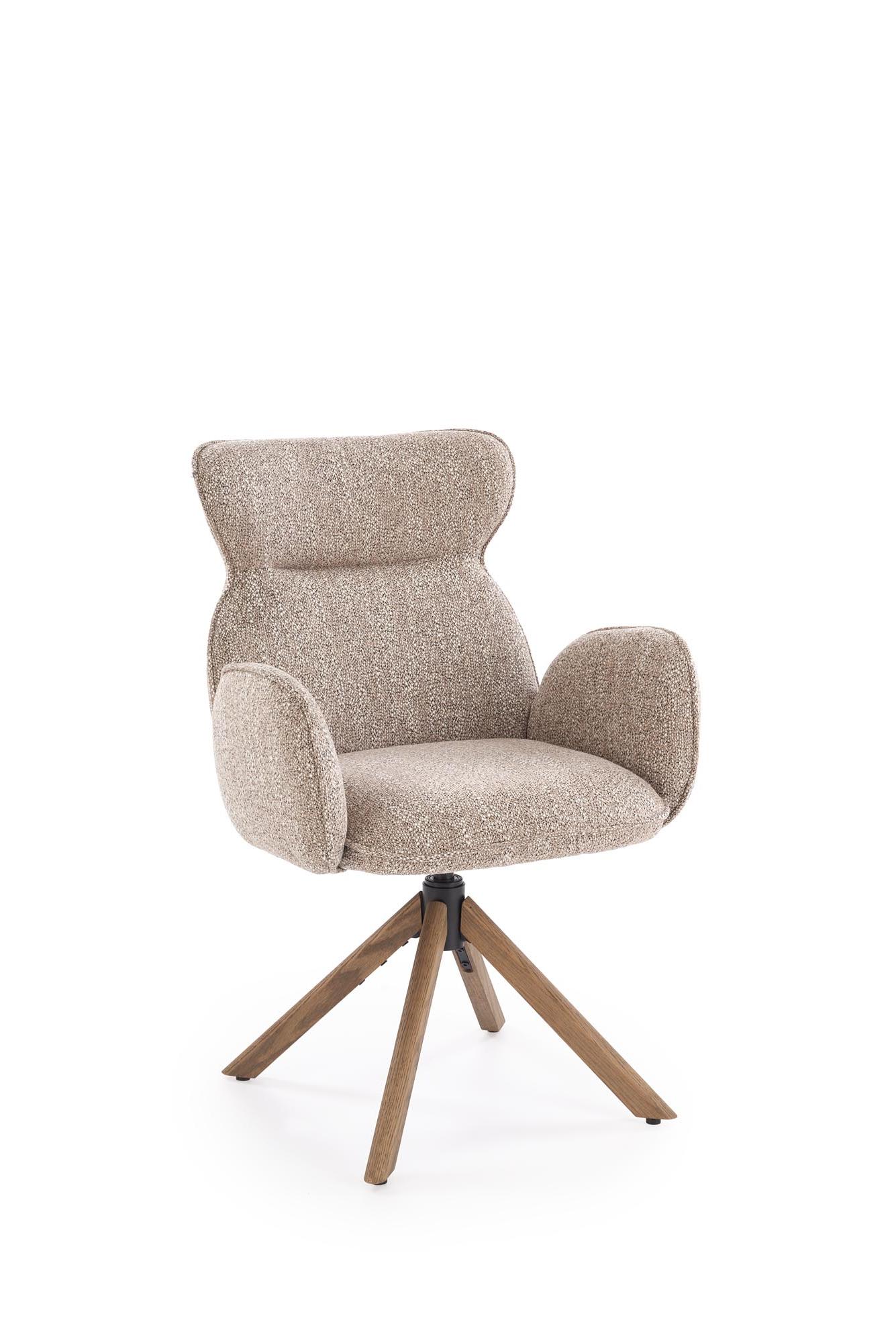 Krzesło wykonano z materiału: tkanina / drewno lite - dębowe, kolory ciemny beżowy - jasny orzech