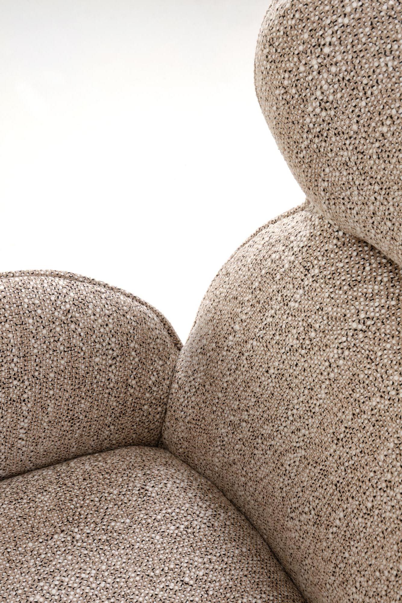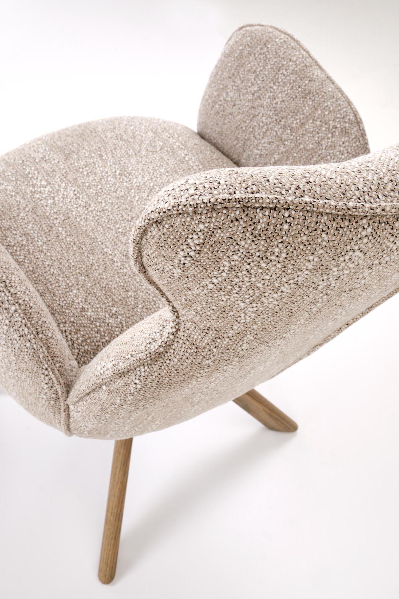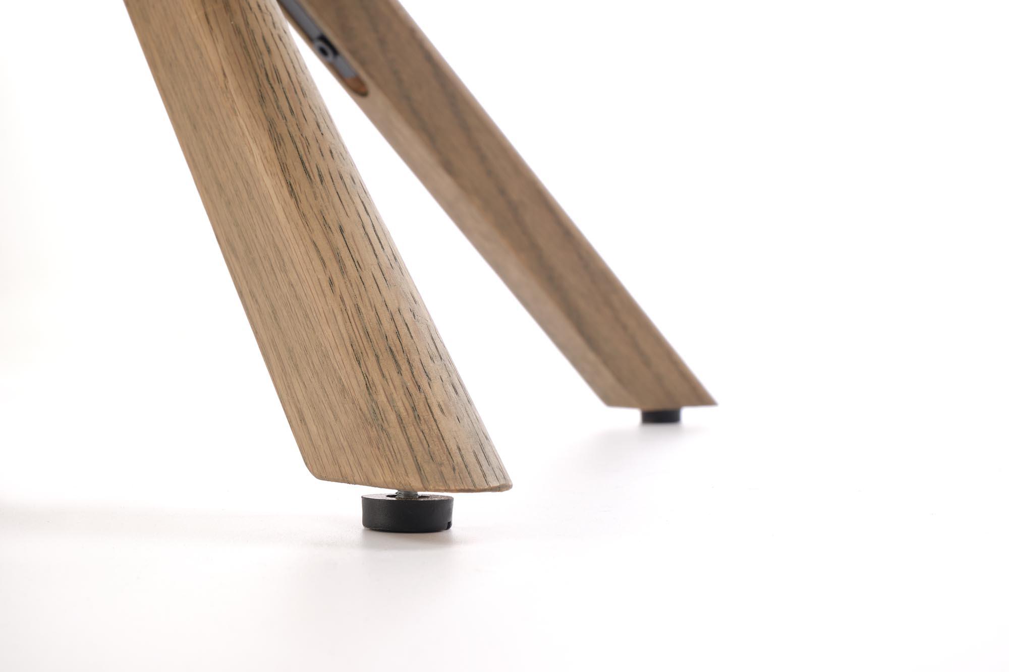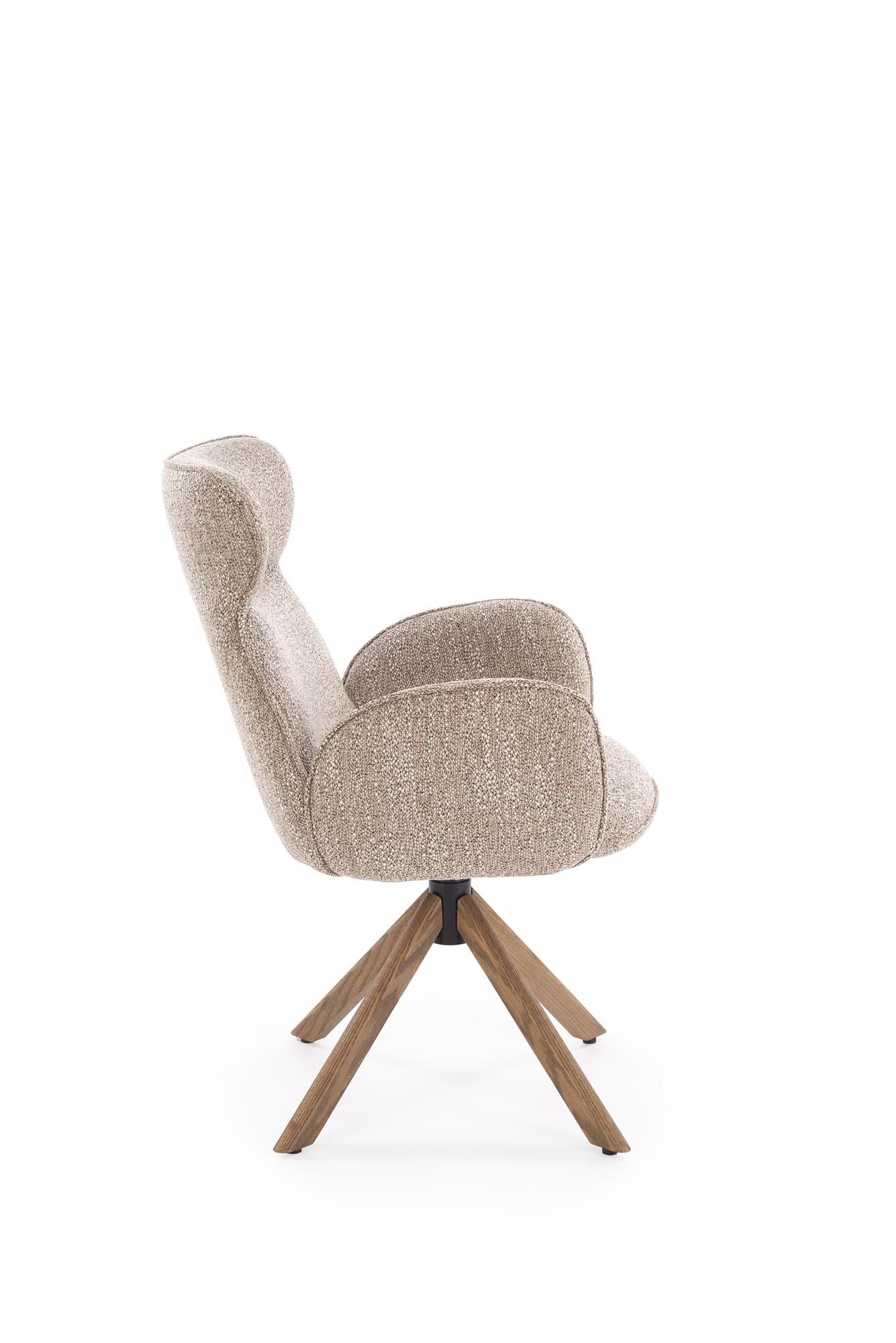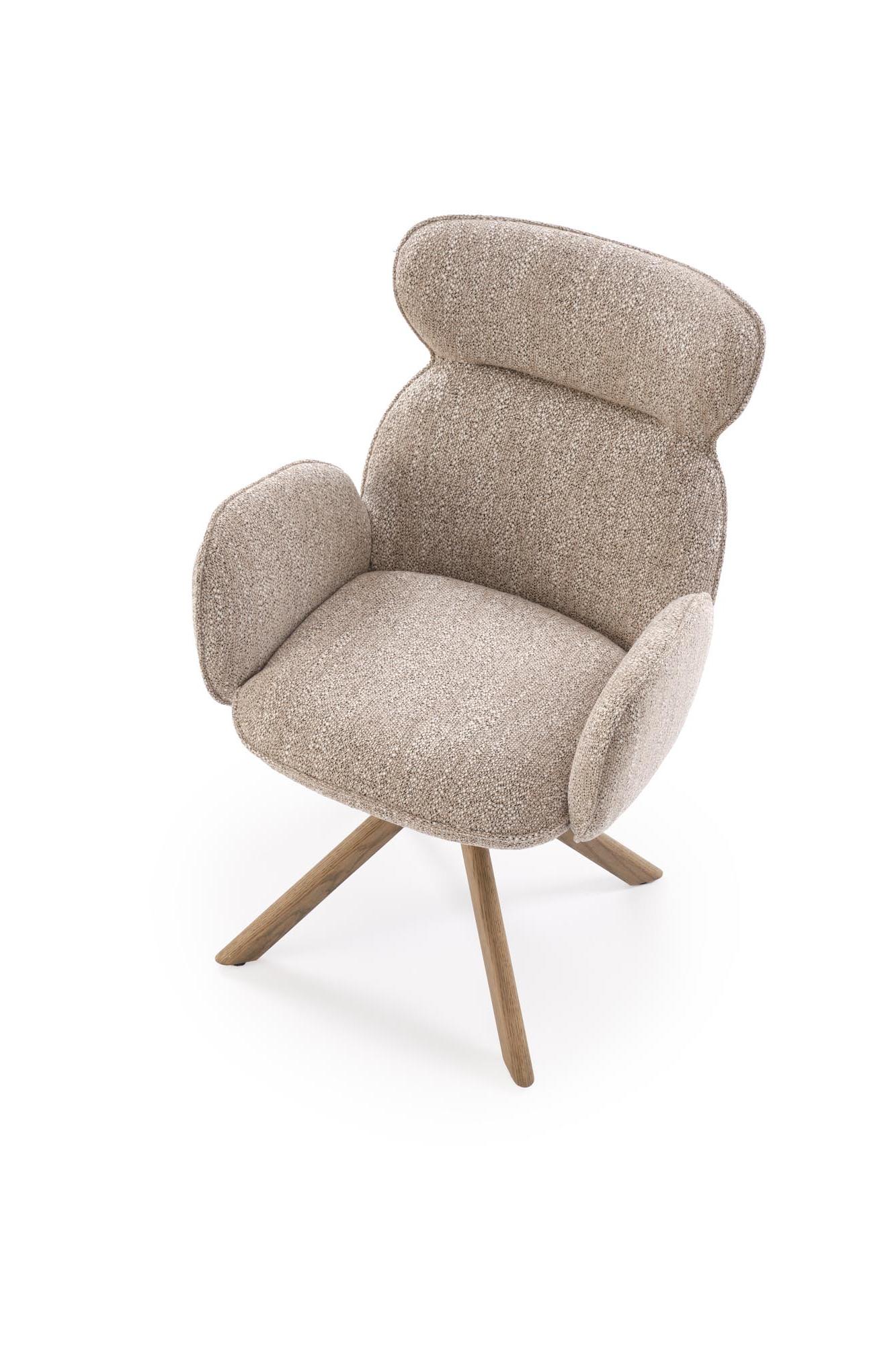 Krzesło wykonano z materiału: tkanina / drewno lite - dębowe, kolory ciemny beżowy - jasny orzech