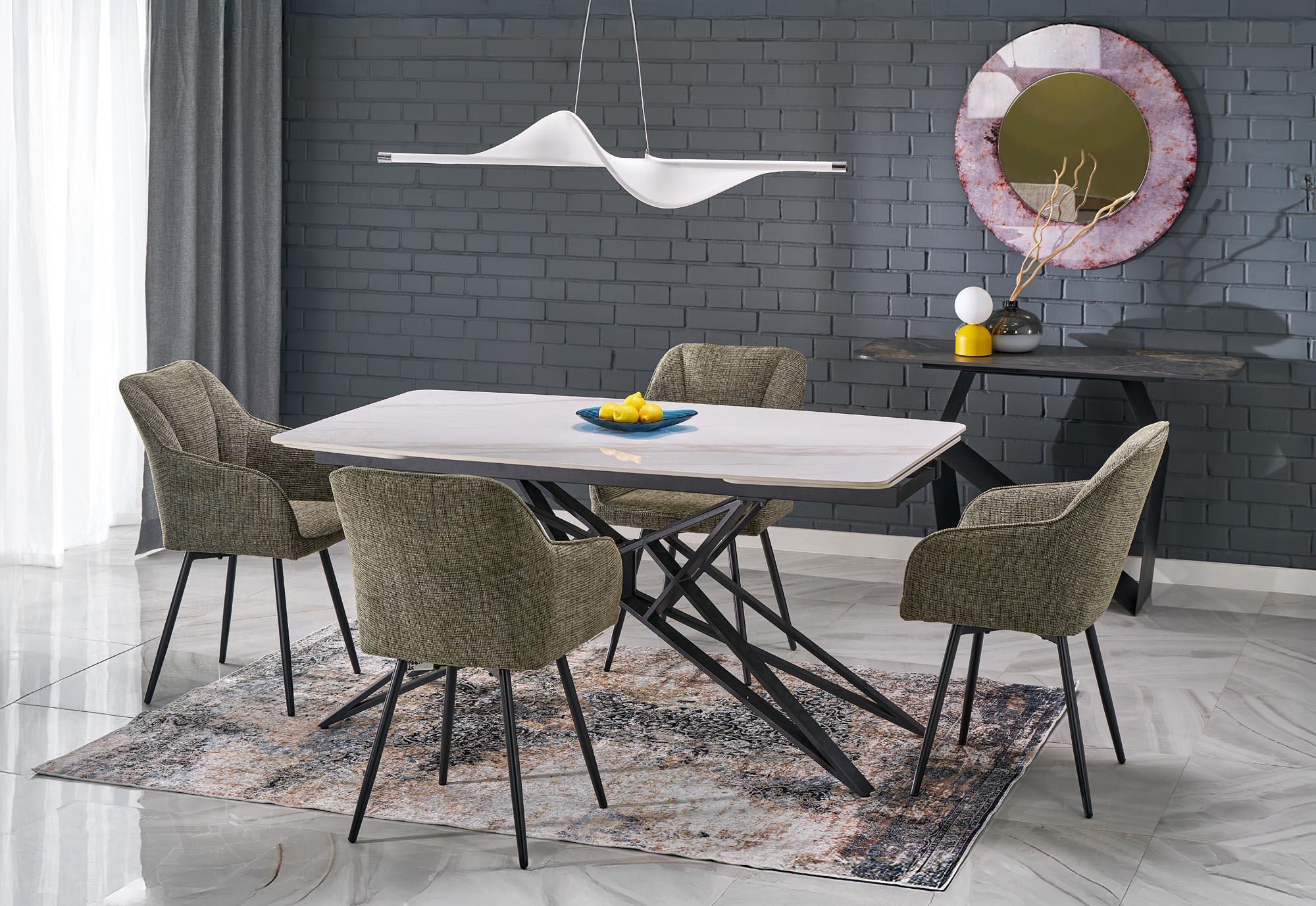 Krzesło wykonano z materiału: tkanina / stal malowana proszkowo, kolor oliwkowy