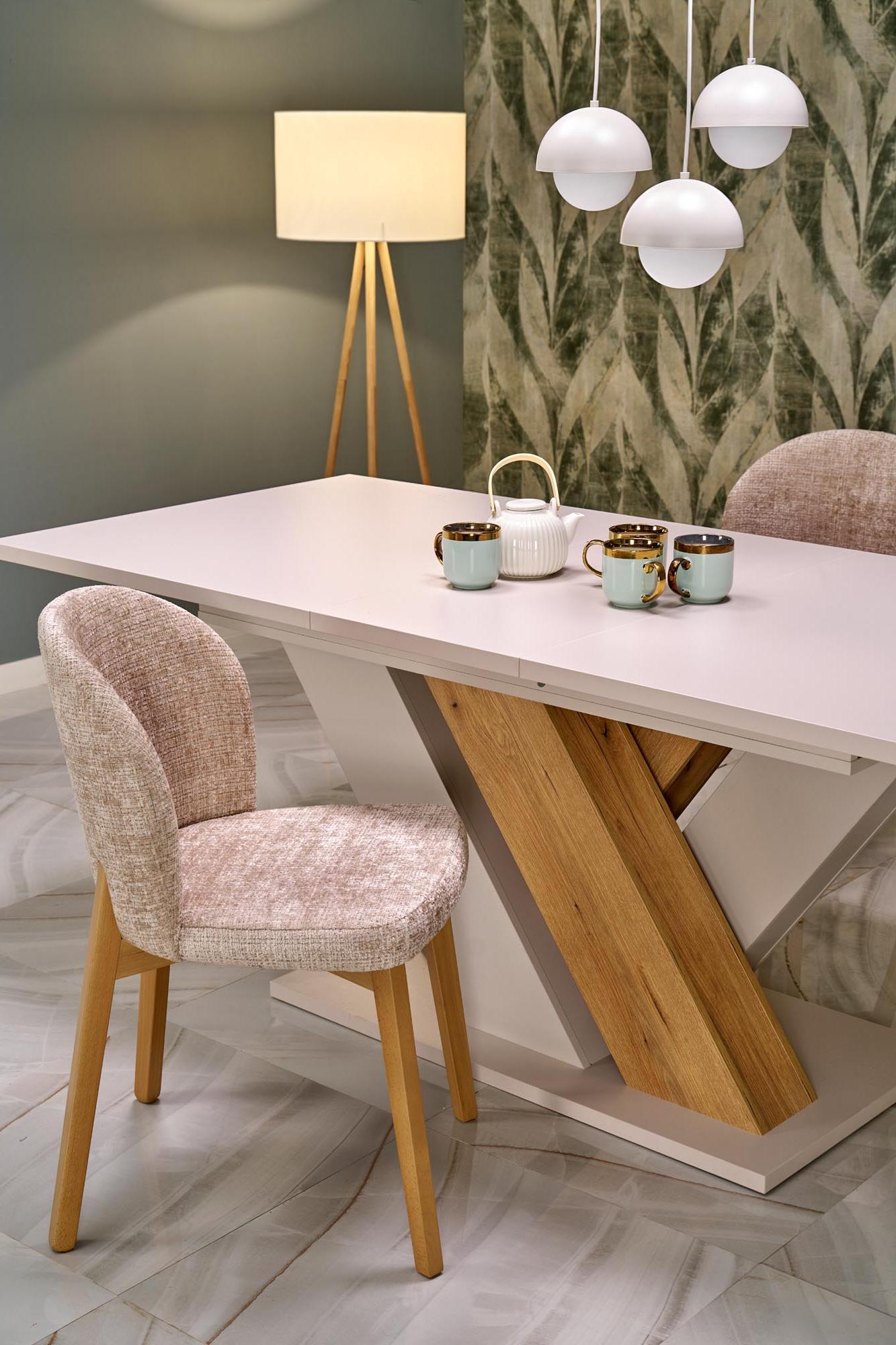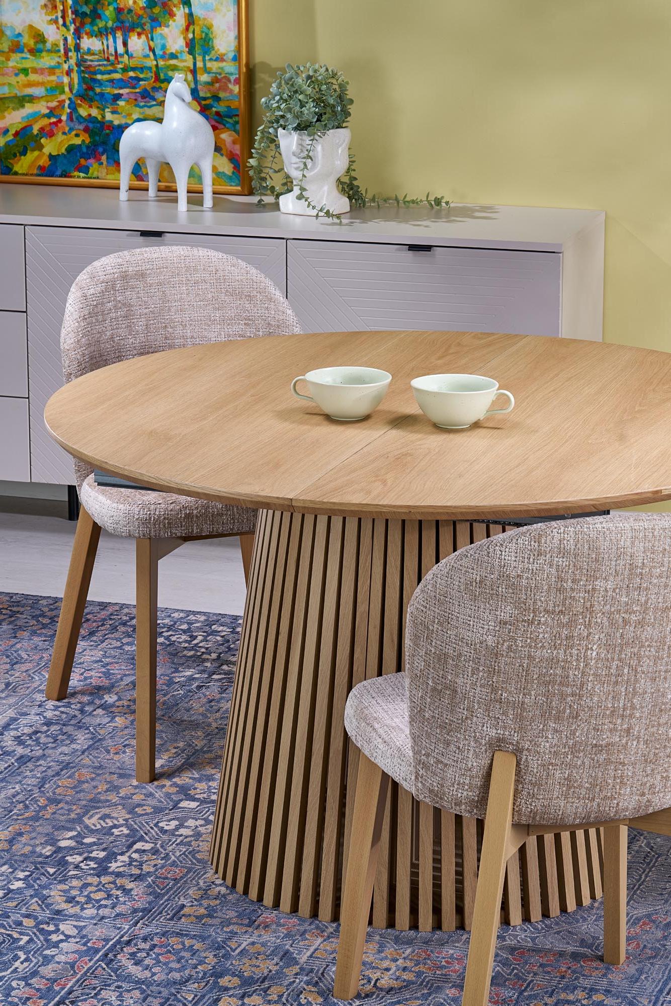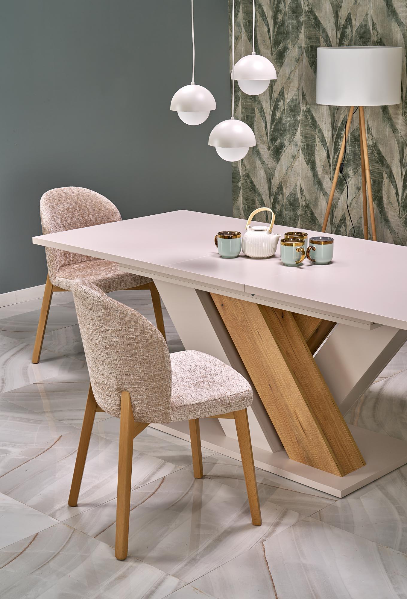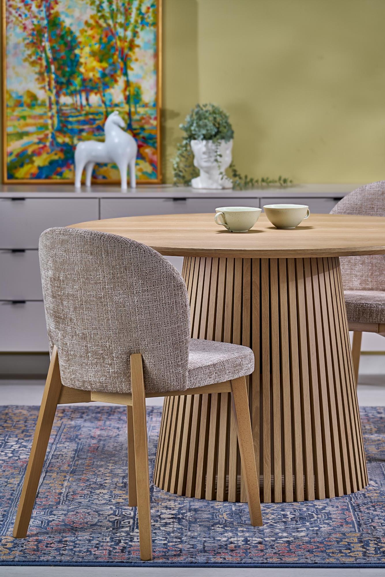 Krzesło wykonano z materiału: tkanina - CREMONA / drewno lite - bukowe, kolory noga - dąb naturalny, tapicerka - beżowy #14