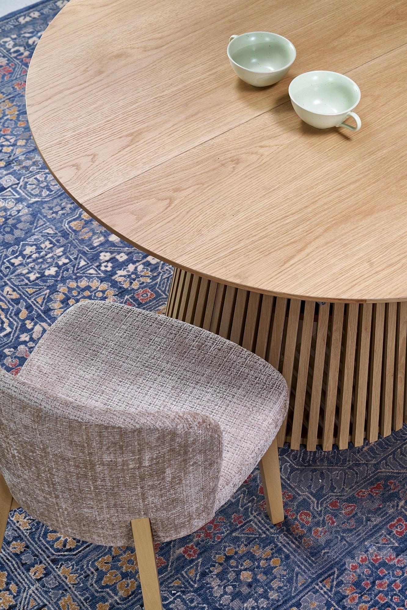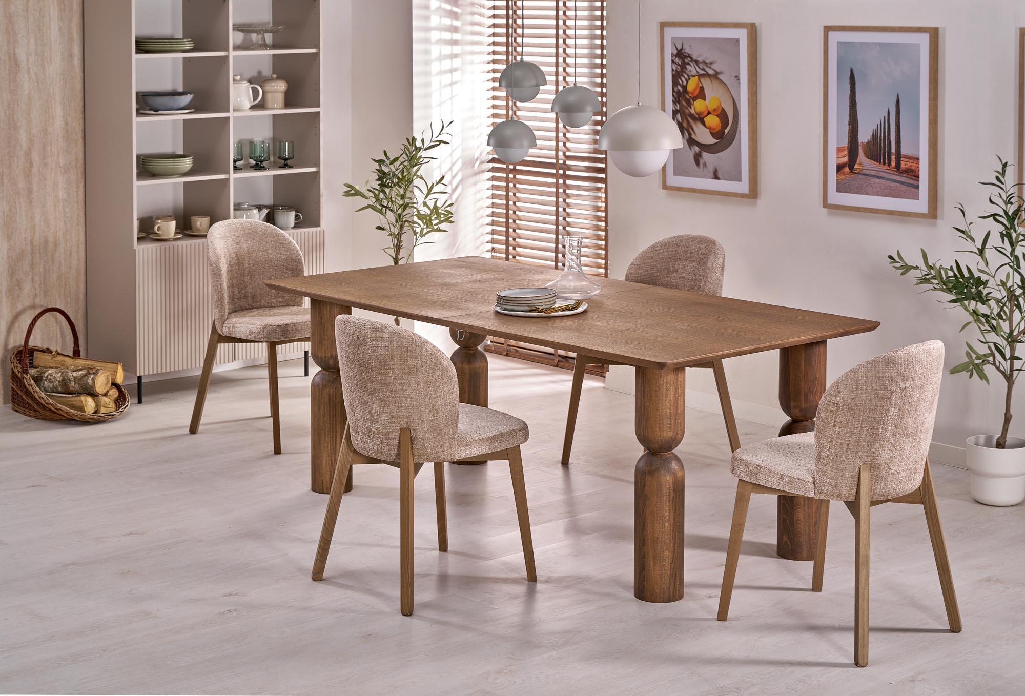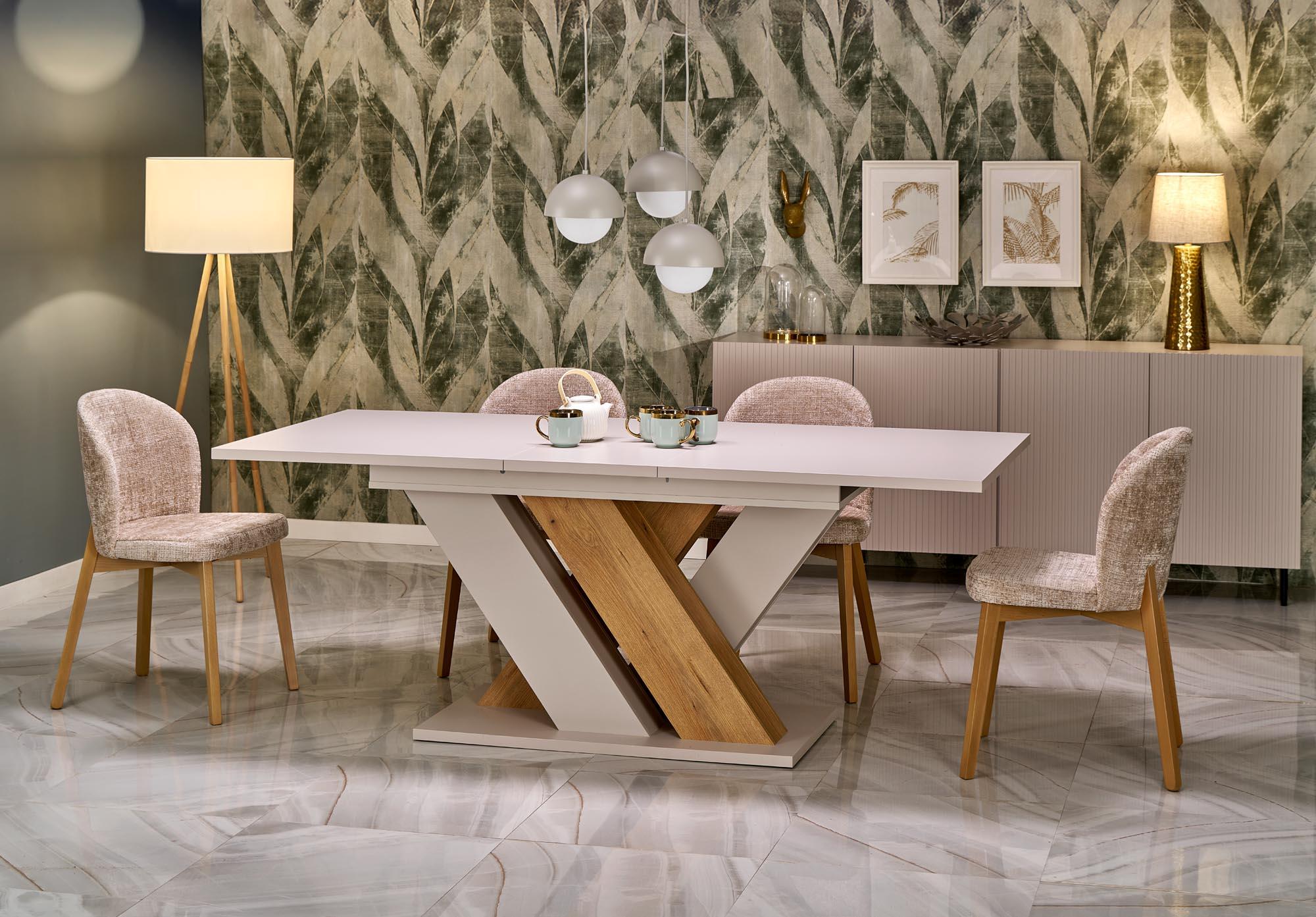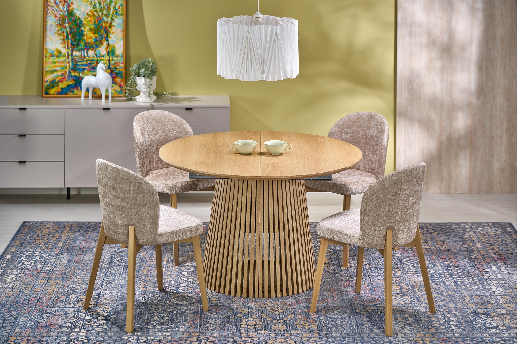 Krzesło wykonano z materiału: tkanina - CREMONA / drewno lite - bukowe, kolory noga - dąb naturalny, tapicerka - beżowy #14