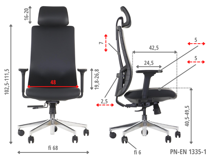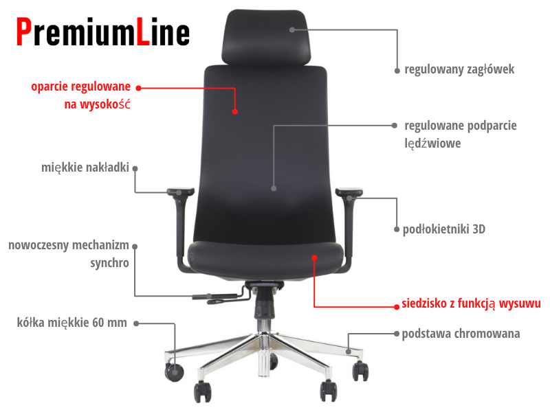 • niezależna regulacja zagłówka (góra-dół, kąt)
