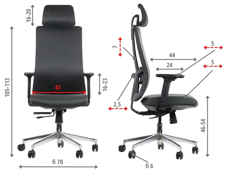 • niezależna regulacja zagłówka (góra-dół, kąt)