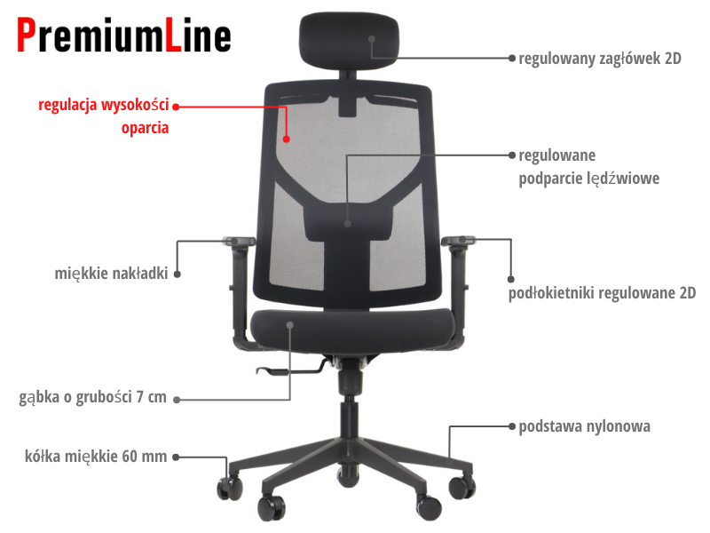 • podłokietniki regulowane 2D - góra-dół, przód-tył