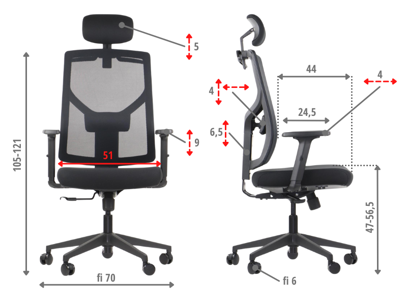 • oparcie tapicerowane wytrzymałą tkaniną siatkową