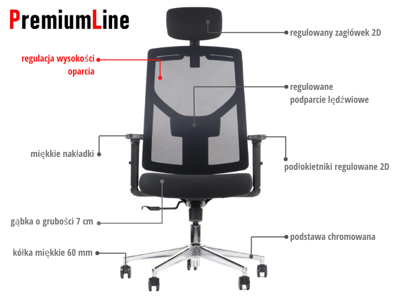 • podłokietniki regulowane 2D - góra-dół, przód-tył
