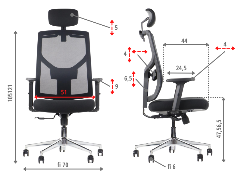 • oparcie tapicerowane wytrzymałą tkaniną siatkową