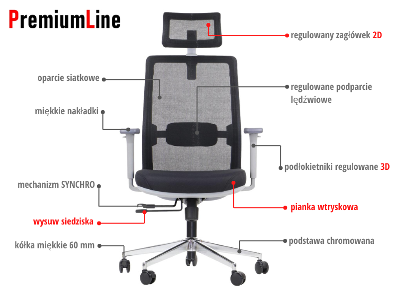 • podłokietniki regulowane 3D - góra-dół, przód-tył, kąt