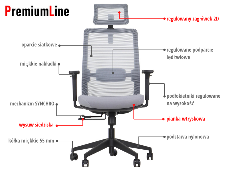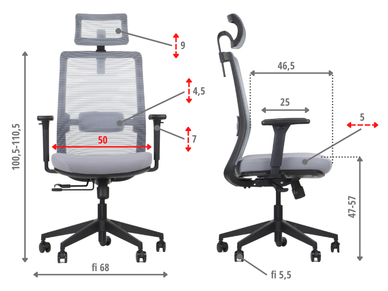 • oparcie tapicerowane wytrzymałą tkaniną siatkową