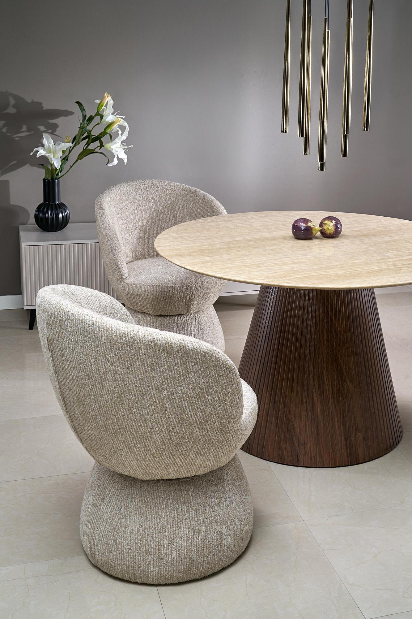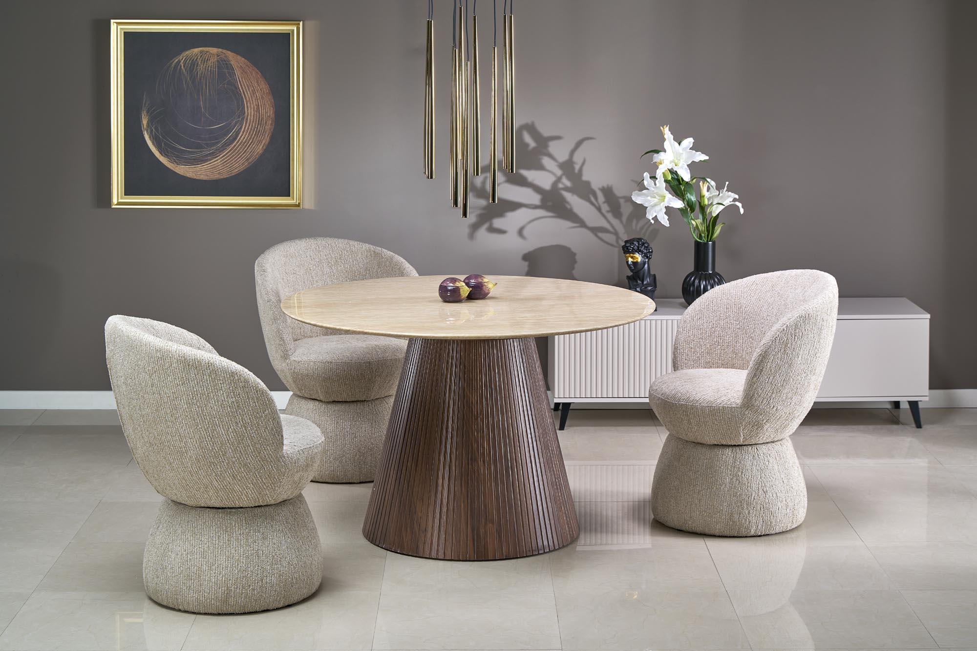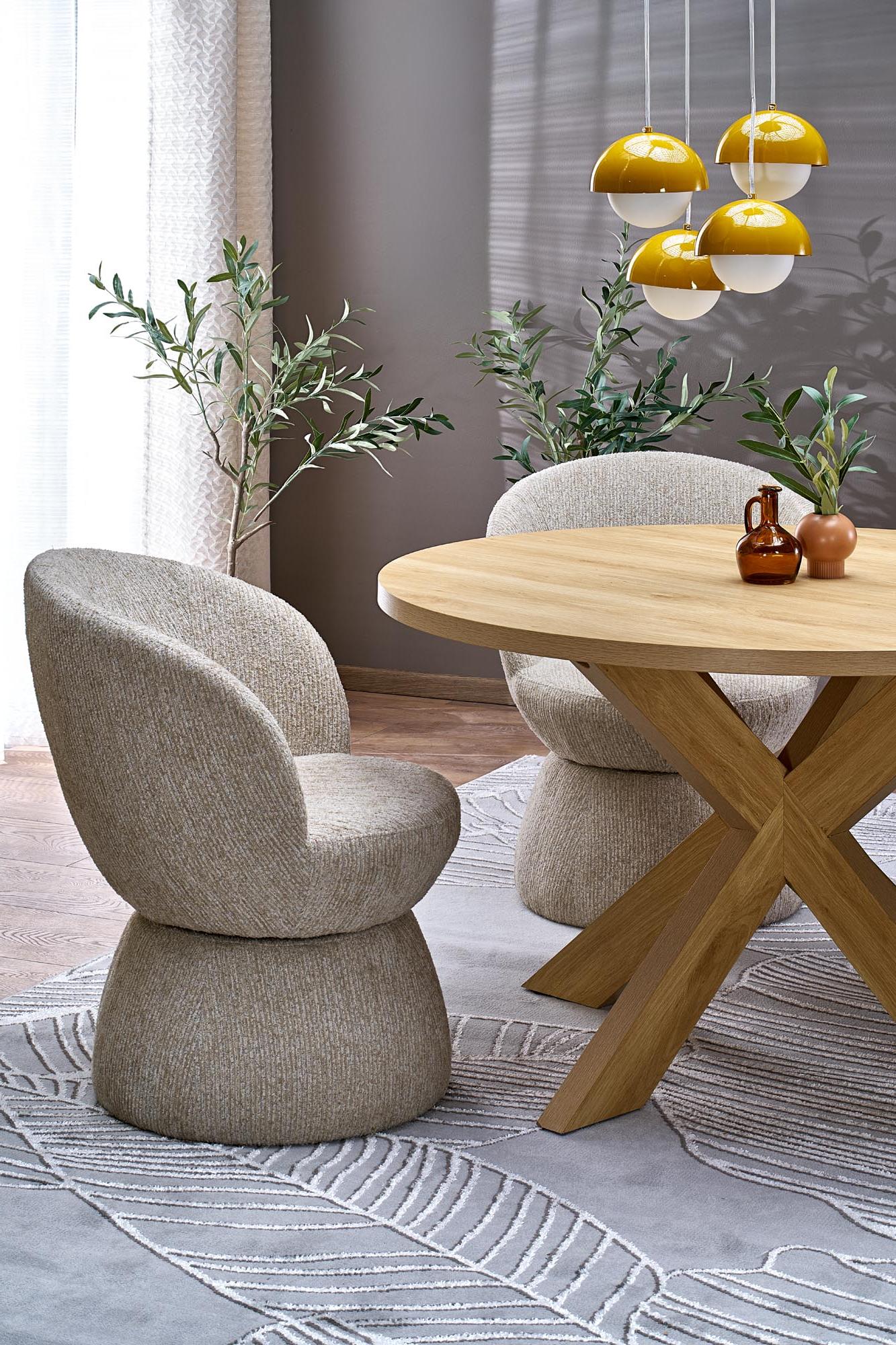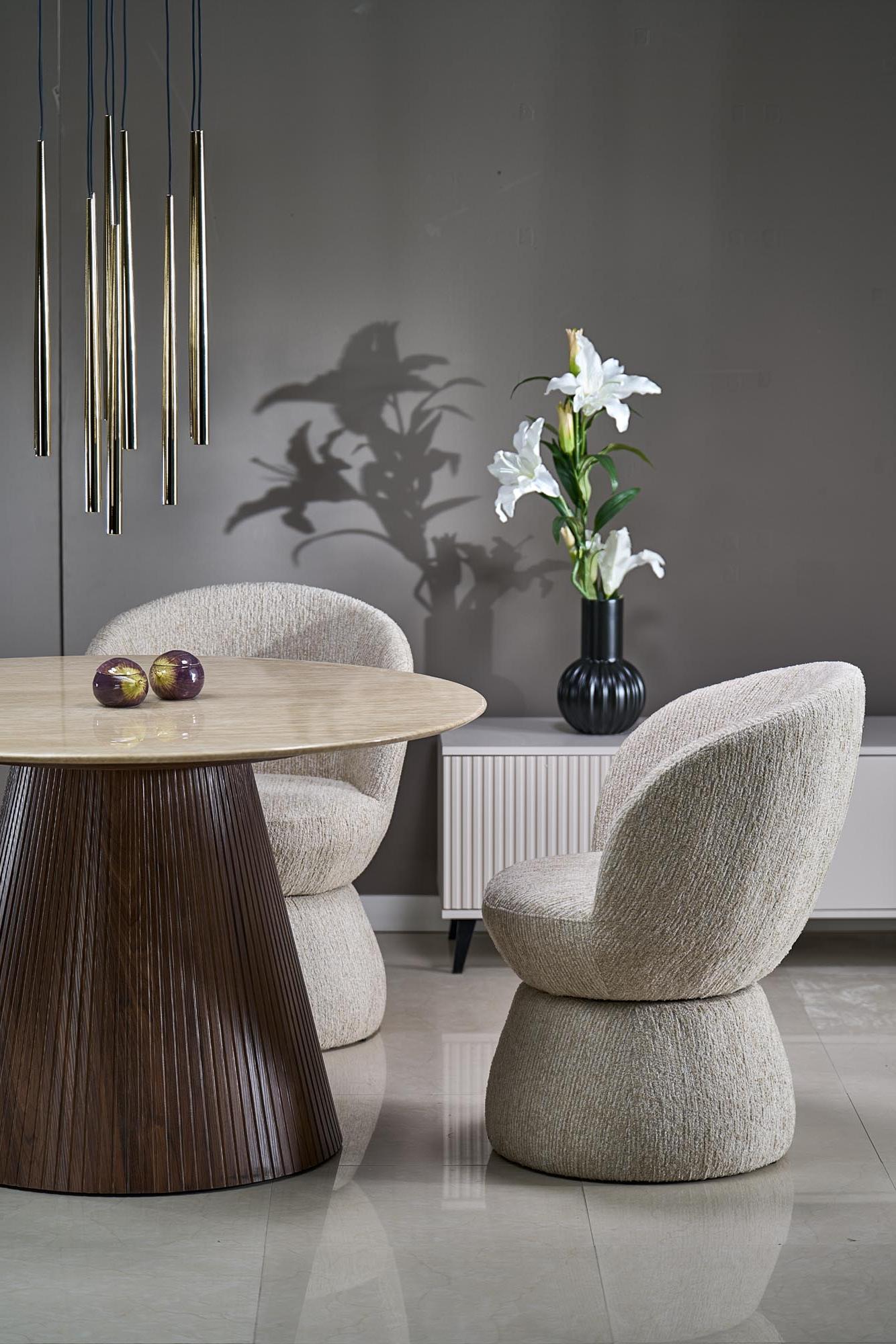 Krzesło wykonano z materiału: tkanina, kolor brązowy