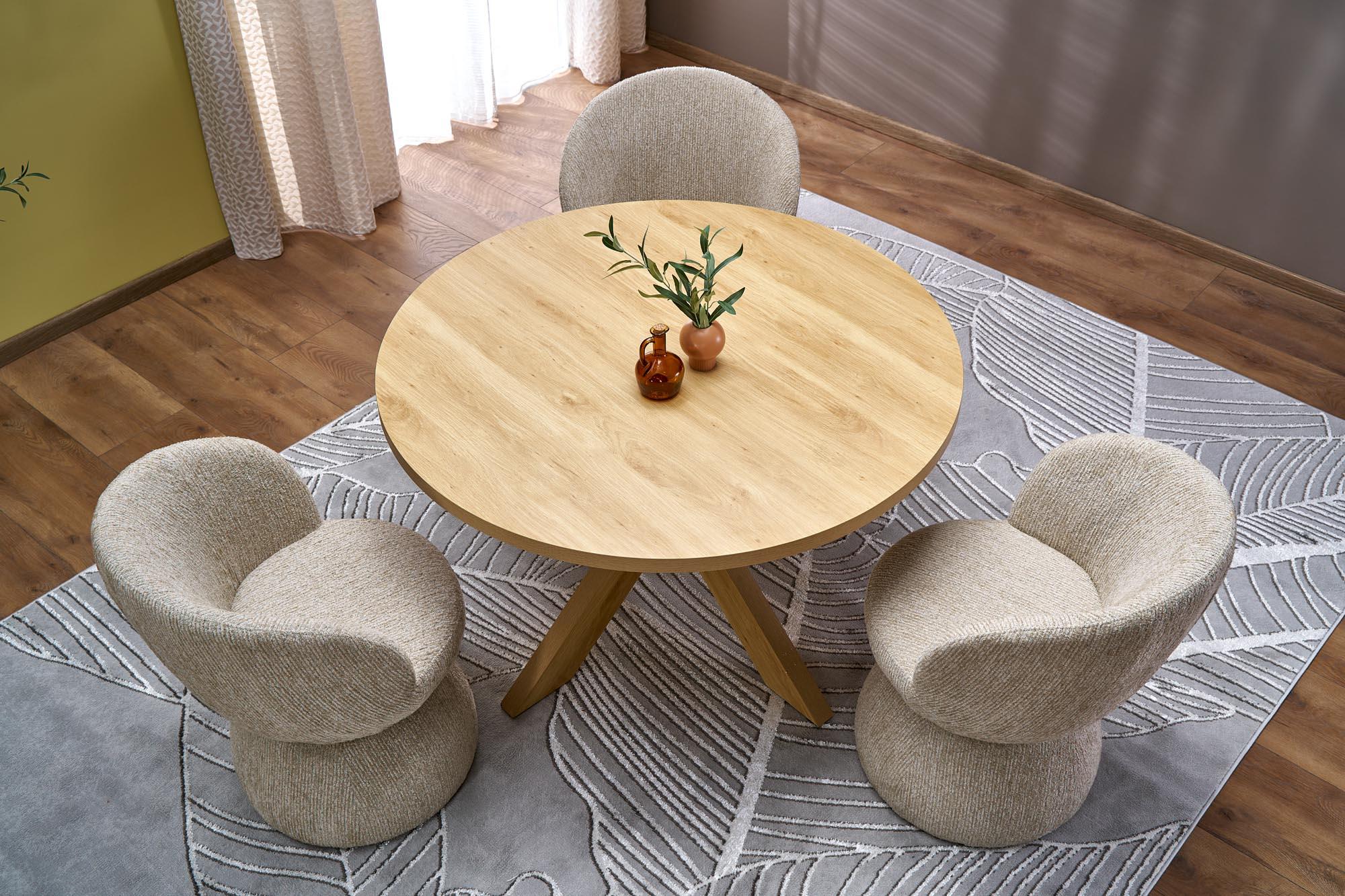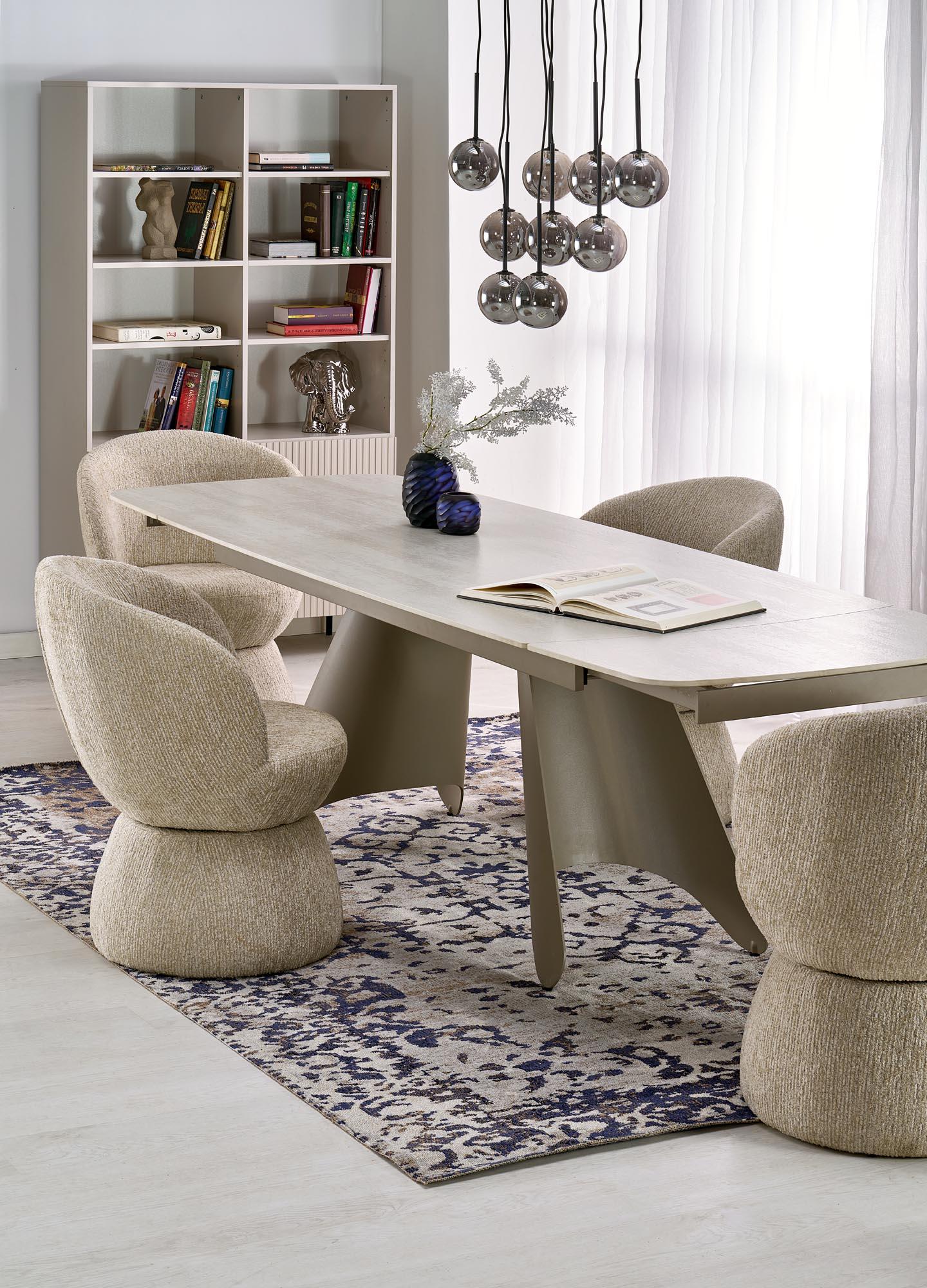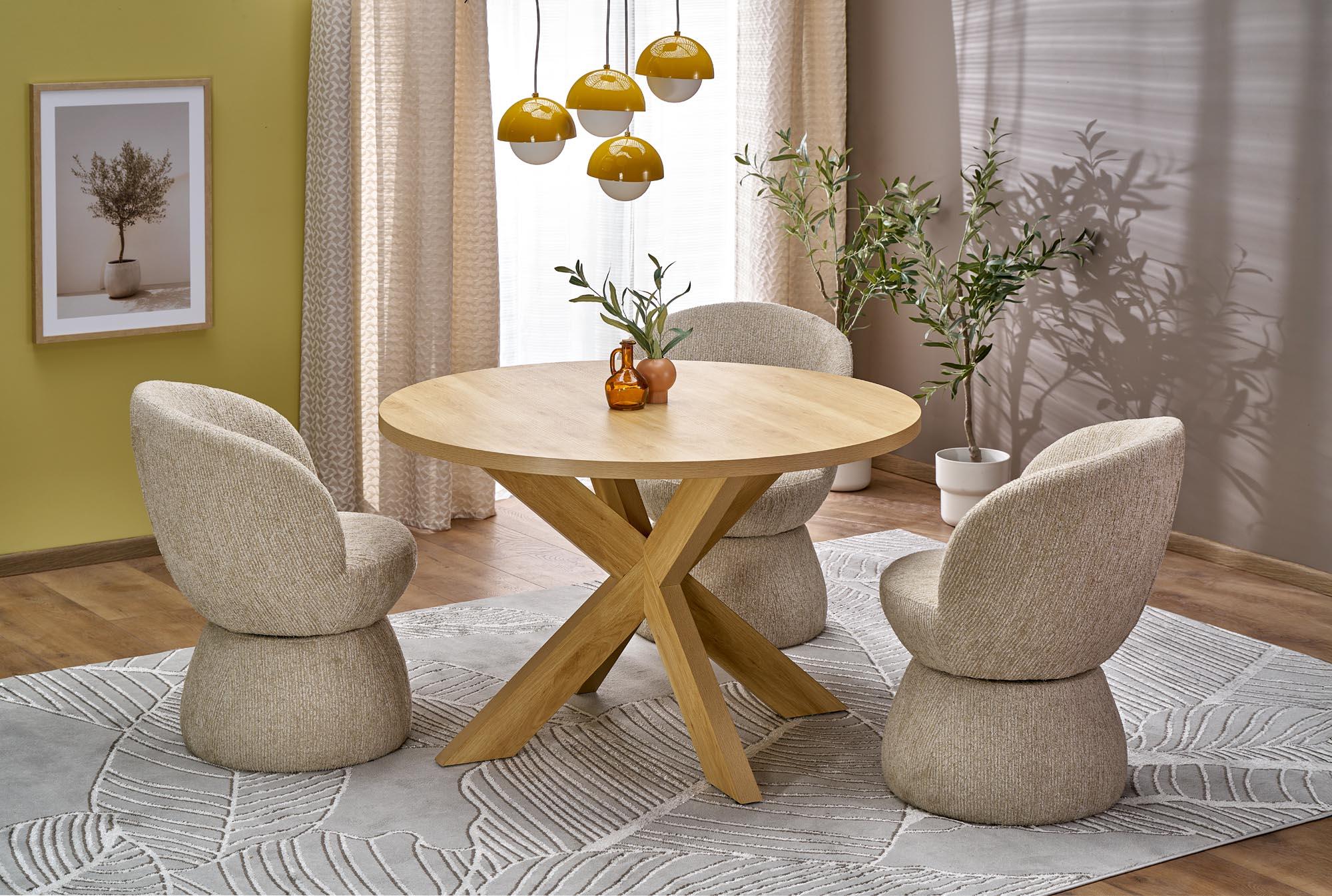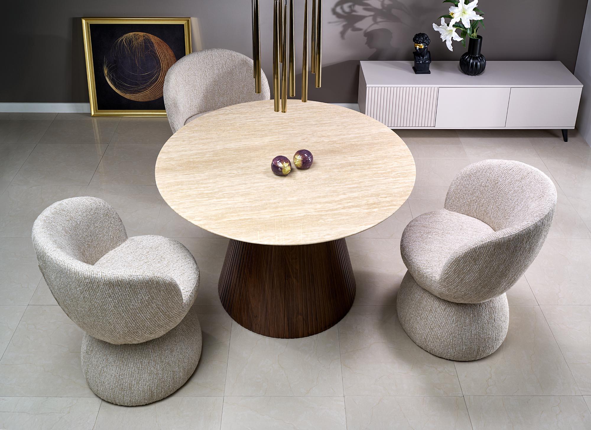 Krzesło wykonano z materiału: tkanina, kolor brązowy