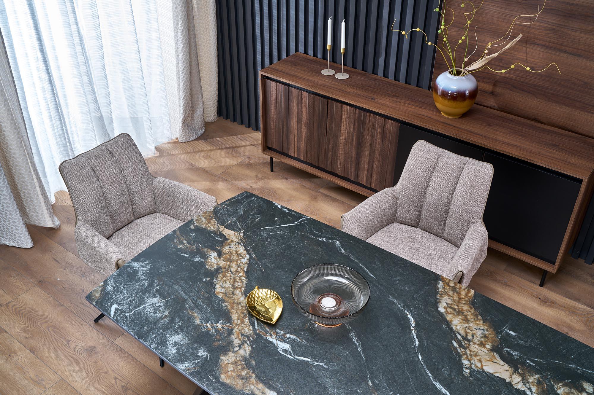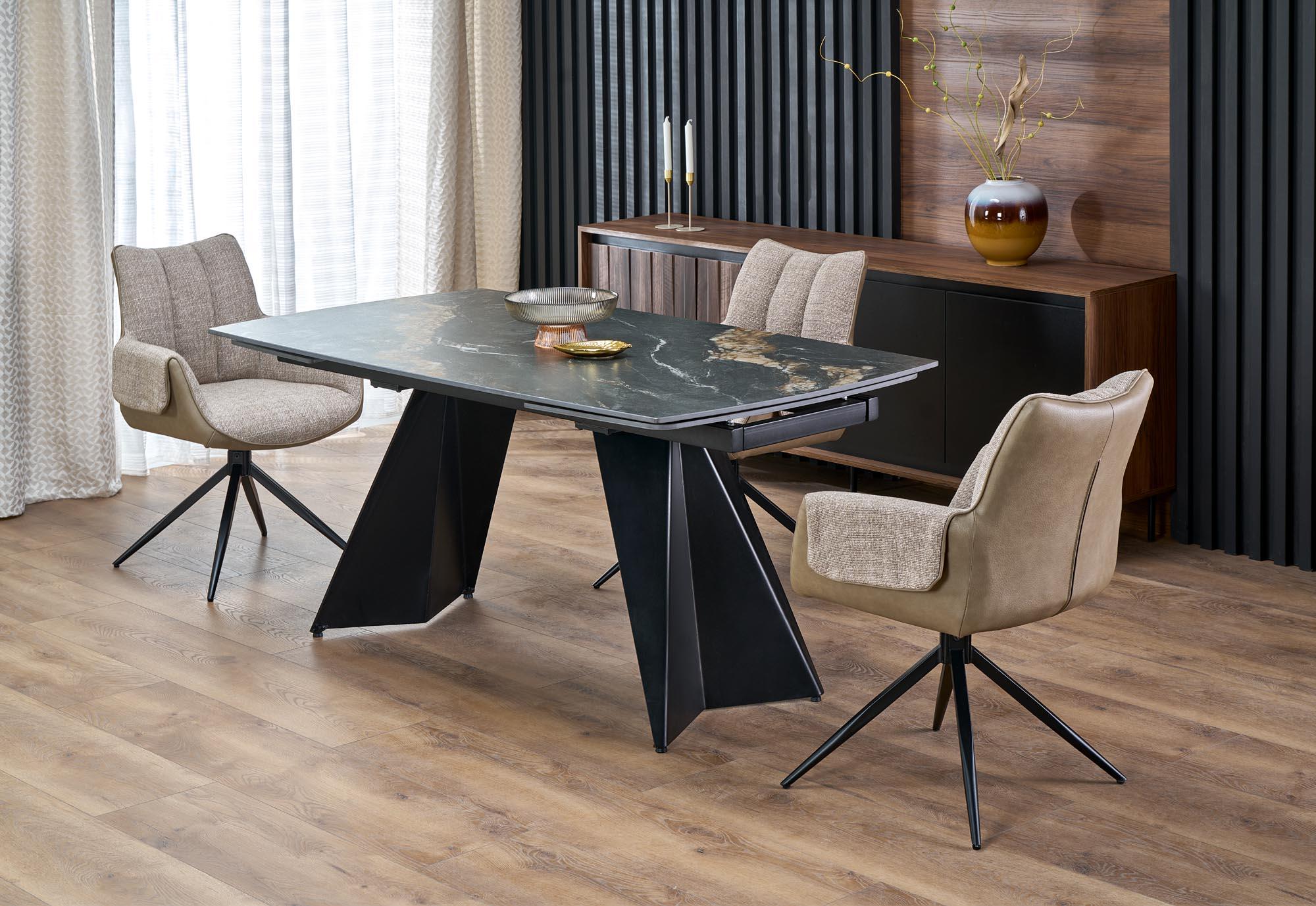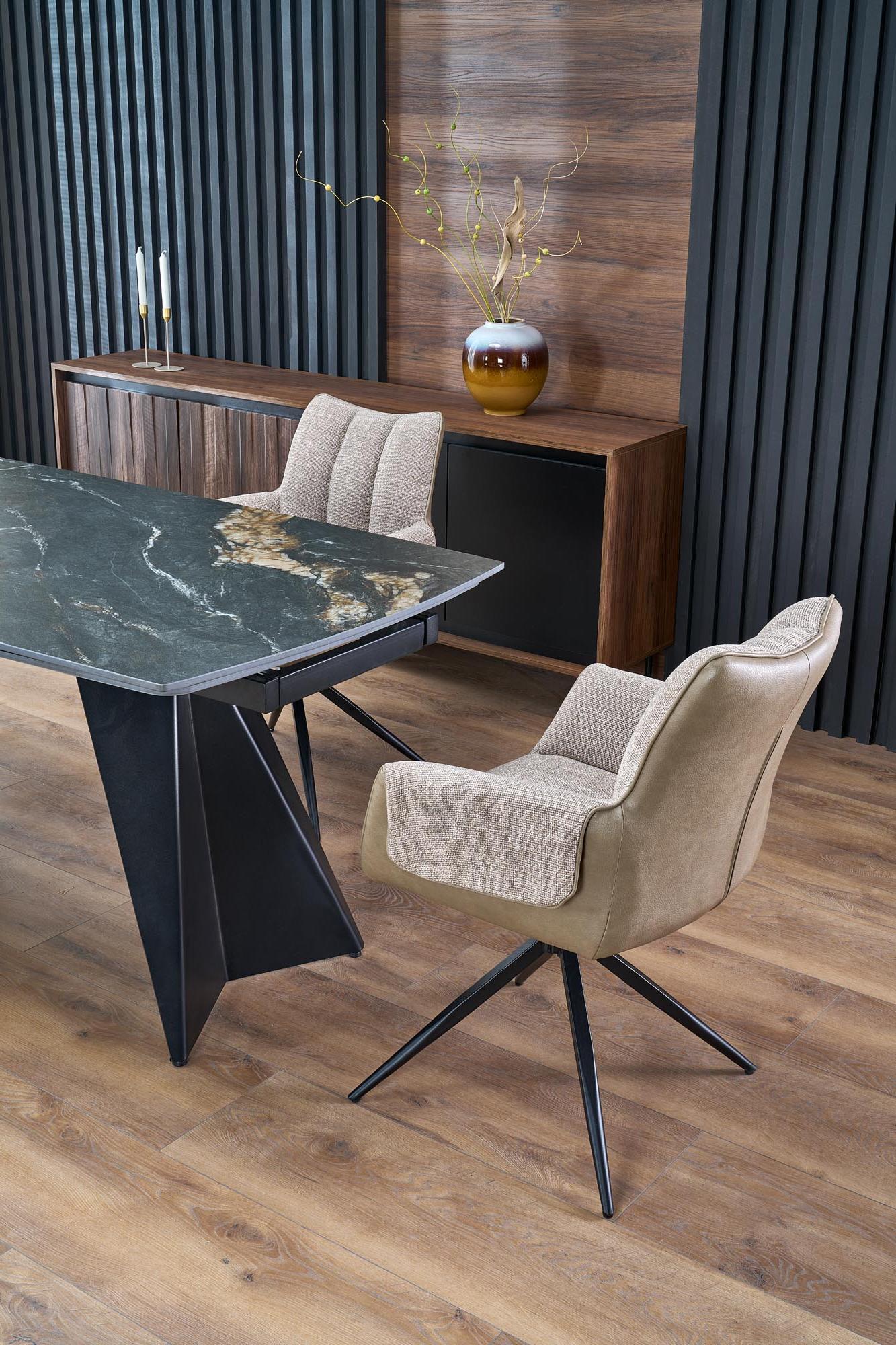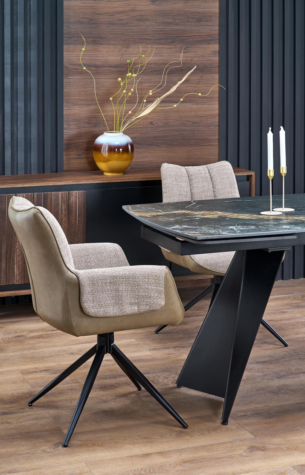 Krzesło wykonano z materiału: tkanina / eco skóra / stal malowana proszkowo, kolor brązowy