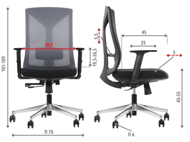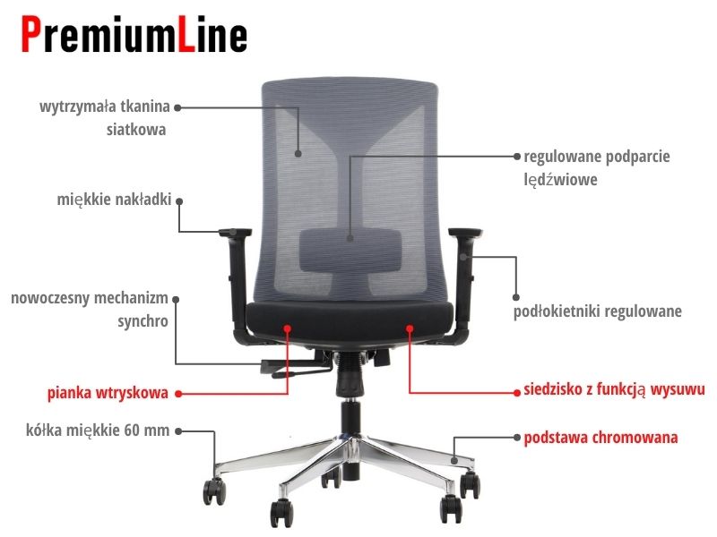 • nakładki podłokietników wykonane z miękkiego poliuretanu