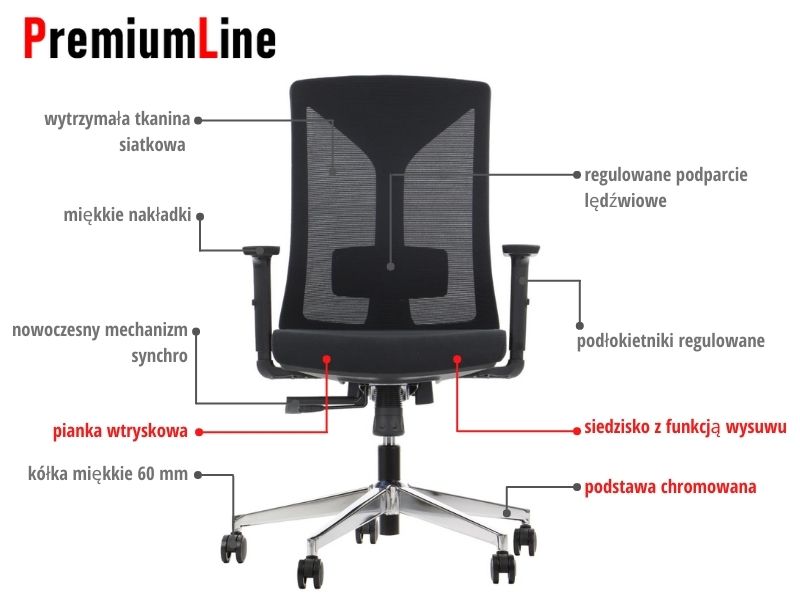 • nakładki podłokietników wykonane z miękkiego poliuretanu