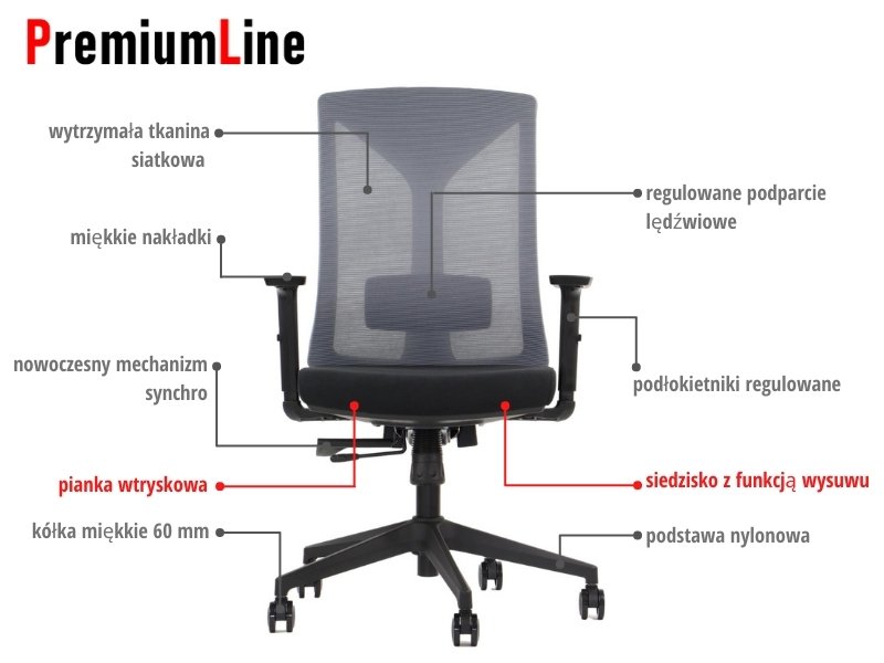 • nakładki podłokietników wykonane z miękkiego poliuretanu