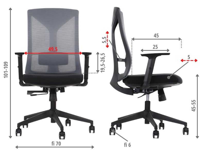 • oparcie tapicerowane wytrzymałą tkaniną siatkową