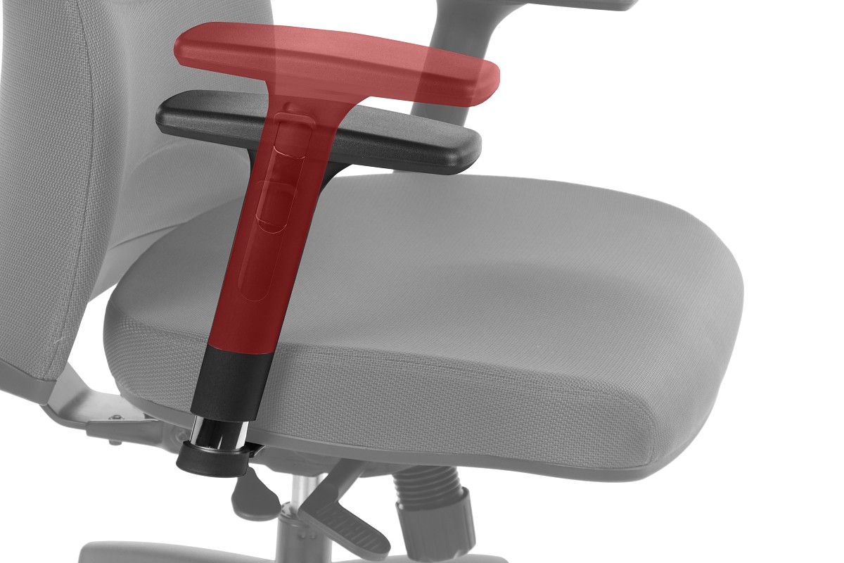 • podłokietniki regulowane (góra-dół, przód-tył, na boki) z miękkimi (poliuretanowymi) nakładkami