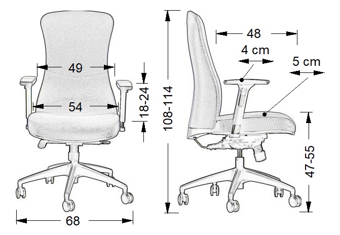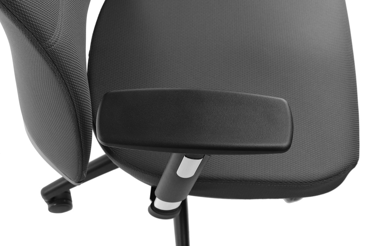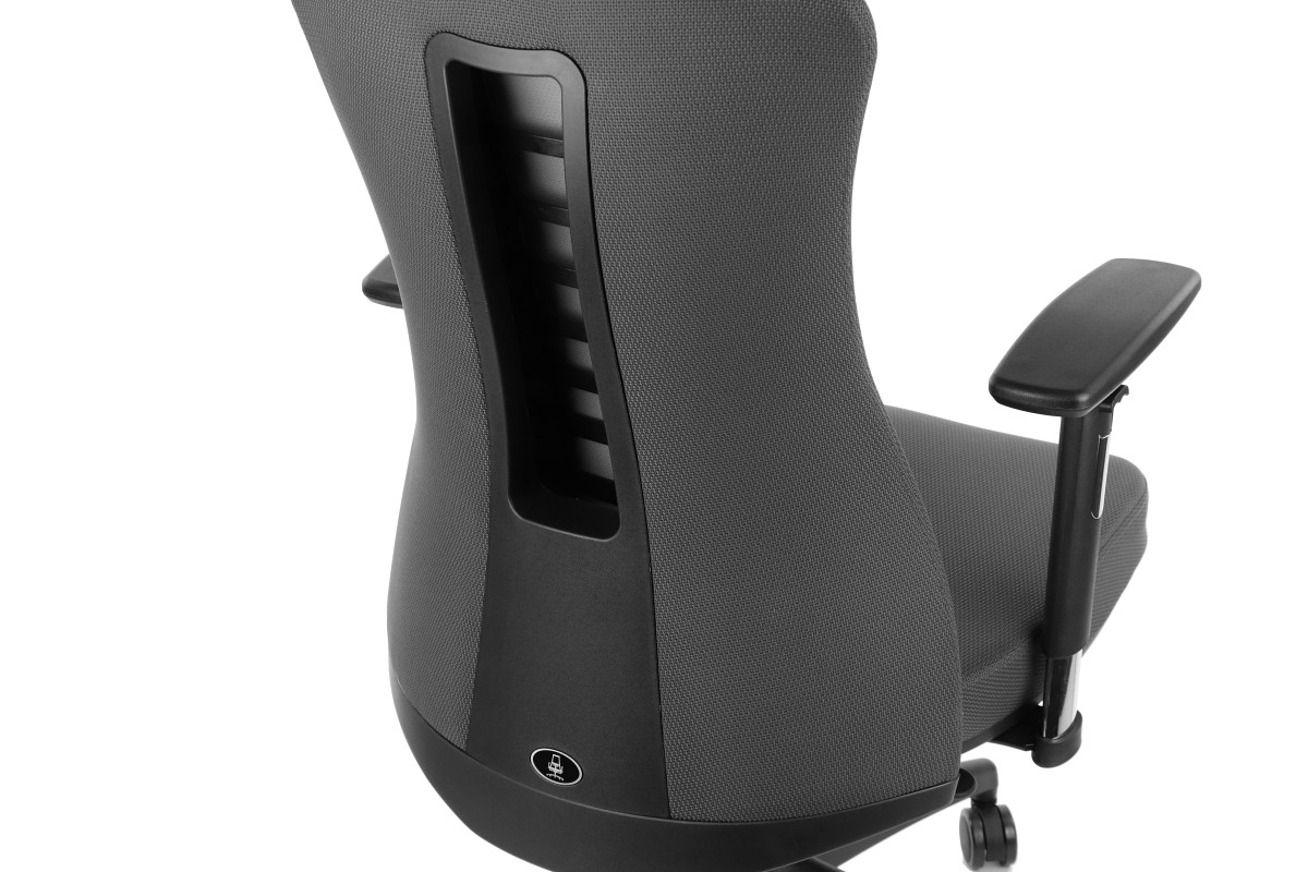 KENTON to fotel biurowy z wyprofilowanym oparciem zapewniającym komfortowe podparcie odcinka lędźwiowego. Pozwala na ustawienie odchyłu oparcia w kilku pozycjach, płynną regulację wysokości i wysuwu siedziska, a także wysokości podłokietników. Dzięki tym funkcjom, bez problemu dopasujesz swój fotel KENTON do własnych preferencji.