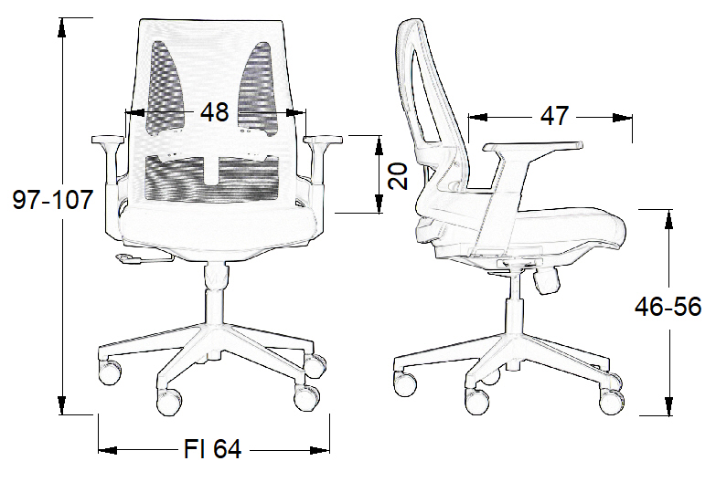• oparcie tapicerowane tkaniną siatkową