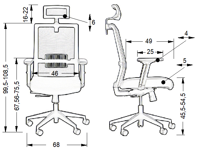 • mechanizm synchroniczny z możliwością blokady odchyłu w kilku pozycjach