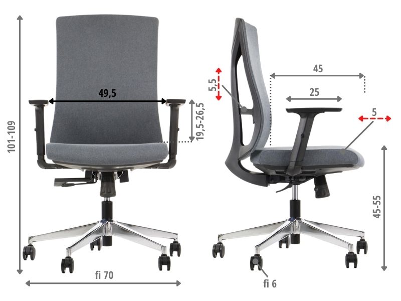 • nakładki podłokietników wykonane z miękkiego poliuretanu