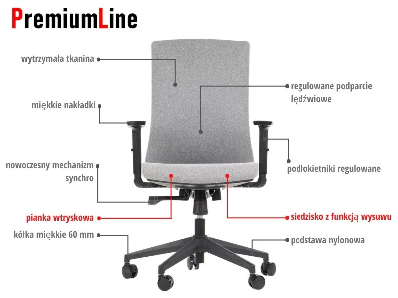 • nakładki podłokietników wykonane z miękkiego poliuretanu