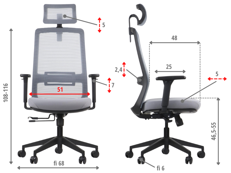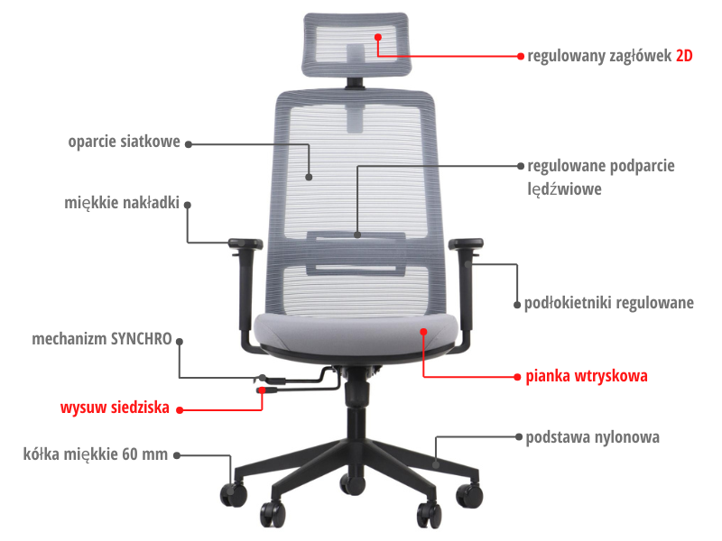 • oparcie tapicerowane wytrzymałą tkaniną siatkową