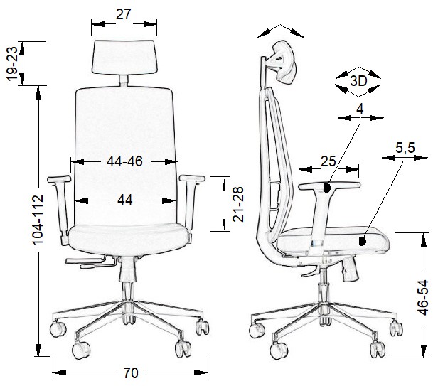 • podłokietniki regulowane 3D (góra-dół, przód-tył, lewo-prawo) z miękkimi (poliuretanowymi) nakładkami