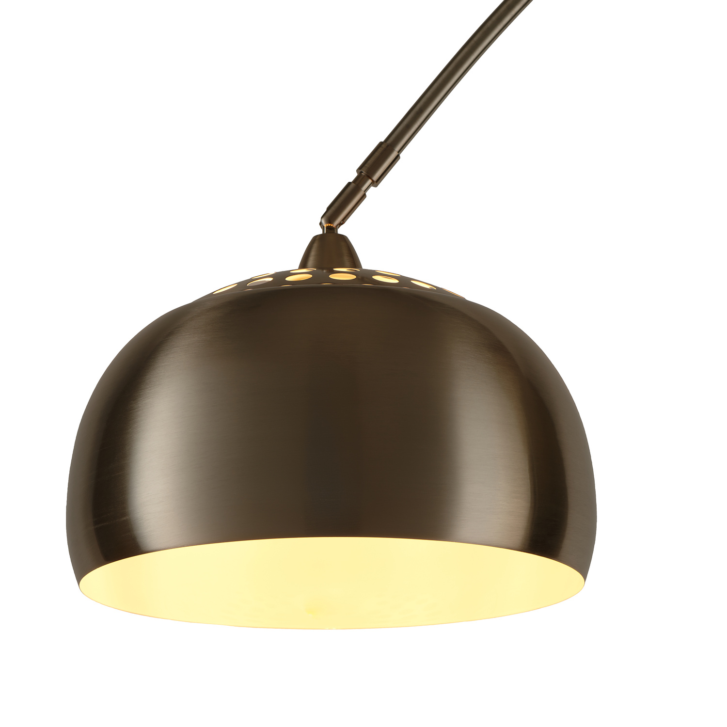 Podstawa lampy o wymiarach 54,5 x 17,5 x23,5 wykonana jest z naturalnego jasnego marmuru co stanowi solidne i ciężkie podparcie dla klosza na wysięgniku.