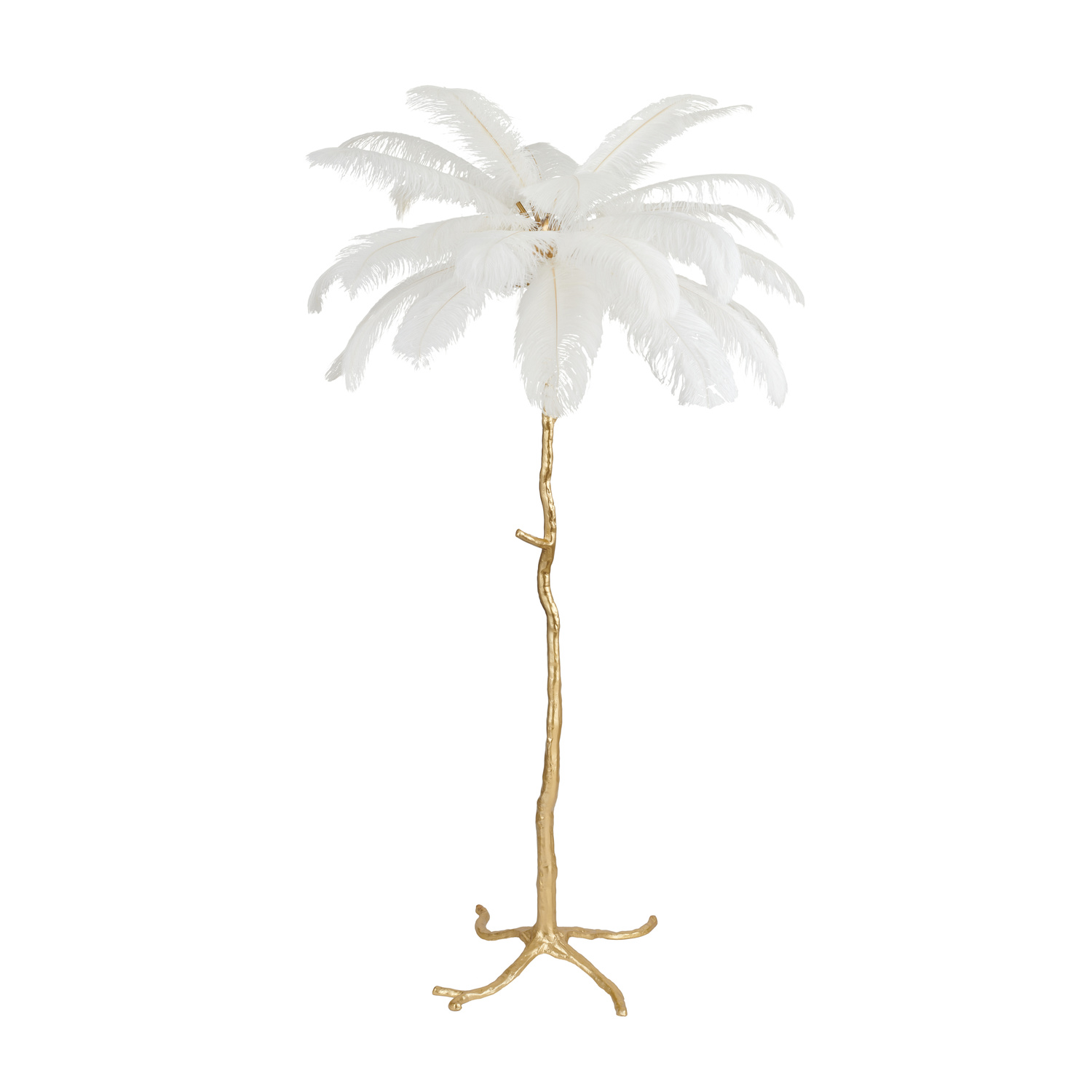 Lampa stojąca EMU złota z białymi piórami to wyjątkowy element wystroju wnętrz, który łączy w sobie elegancję, luksus i odrobinę ekstrawagancji.