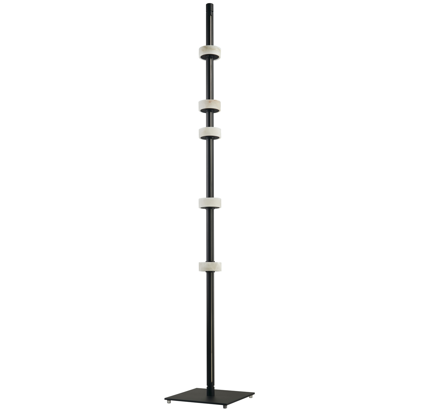 Klasyczna smukła lampa stojąca RINGO wykonana jest z metalu w kolorze czarnym.