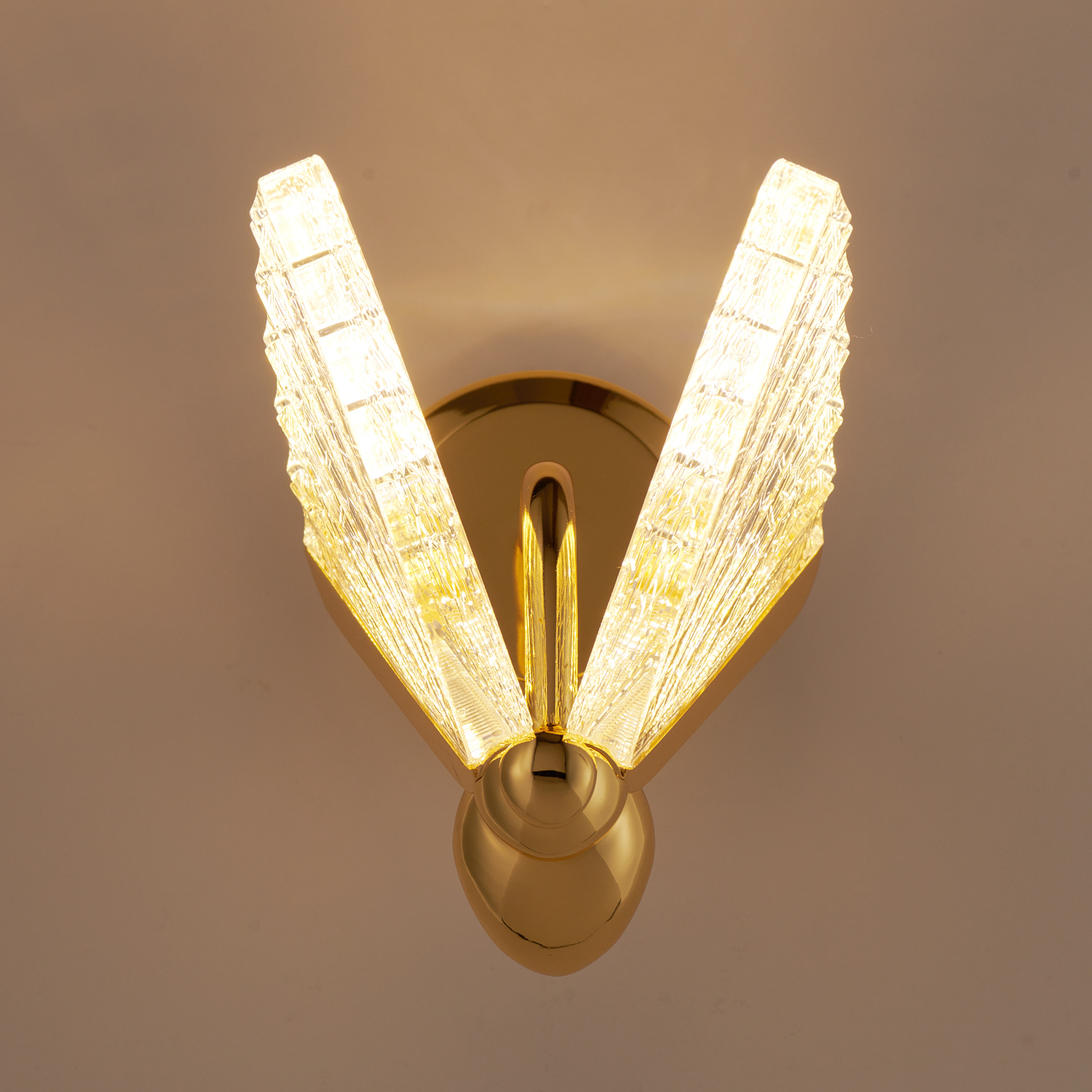 Skrzydła wykonane są z transparentnego materiału, akrylu co pozwala na delikatne rozproszenie światła.