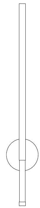 Jego prosta, geometryczna forma składa się z długiej, wąskiej rurki i niewielkiej podstawy w kolorze złotym.