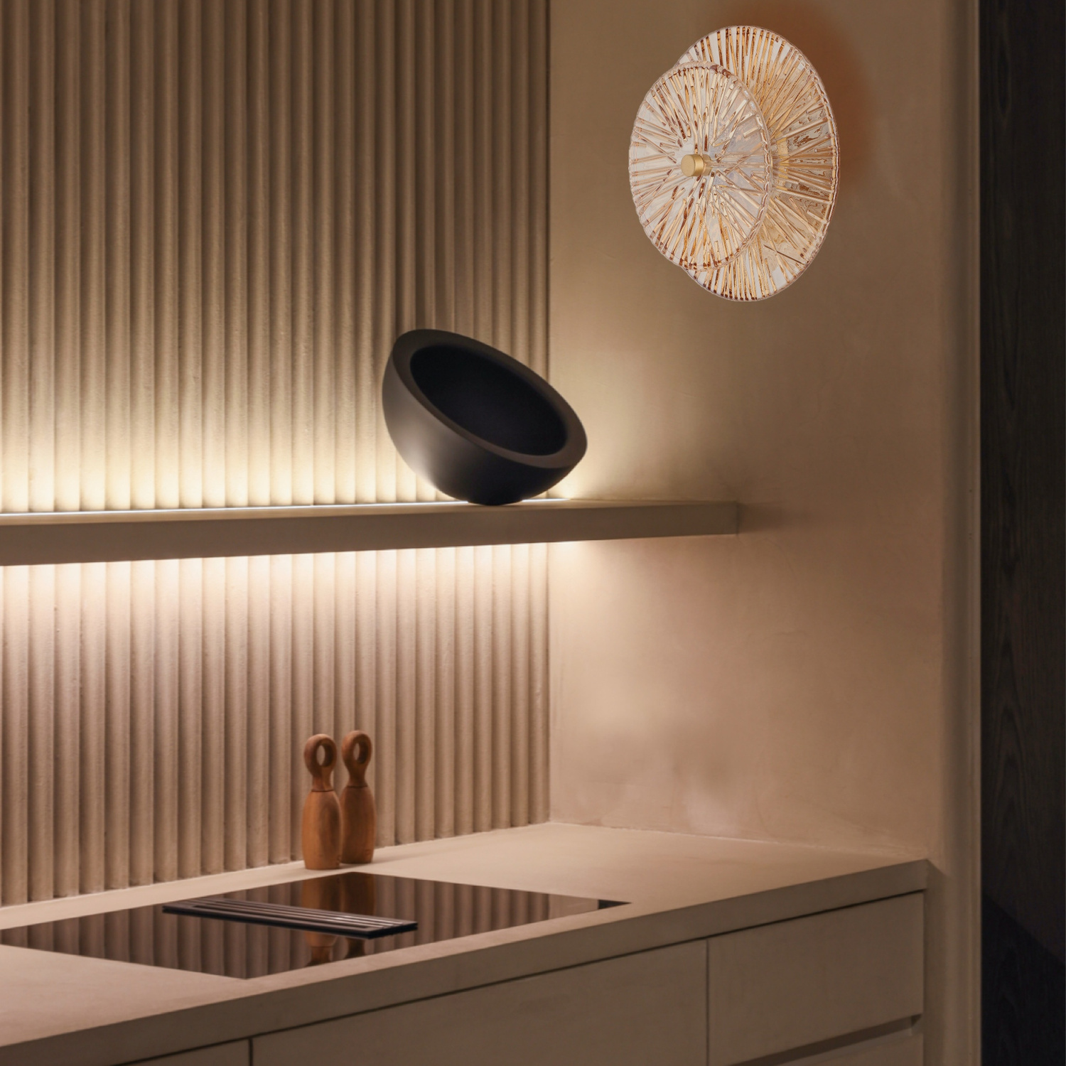 Szkło ryflowane tworzy ciekawy efekt wizualny. Dzięki temu światło przechodzące przez lampę tworzy piękne, rozproszone refleksy.