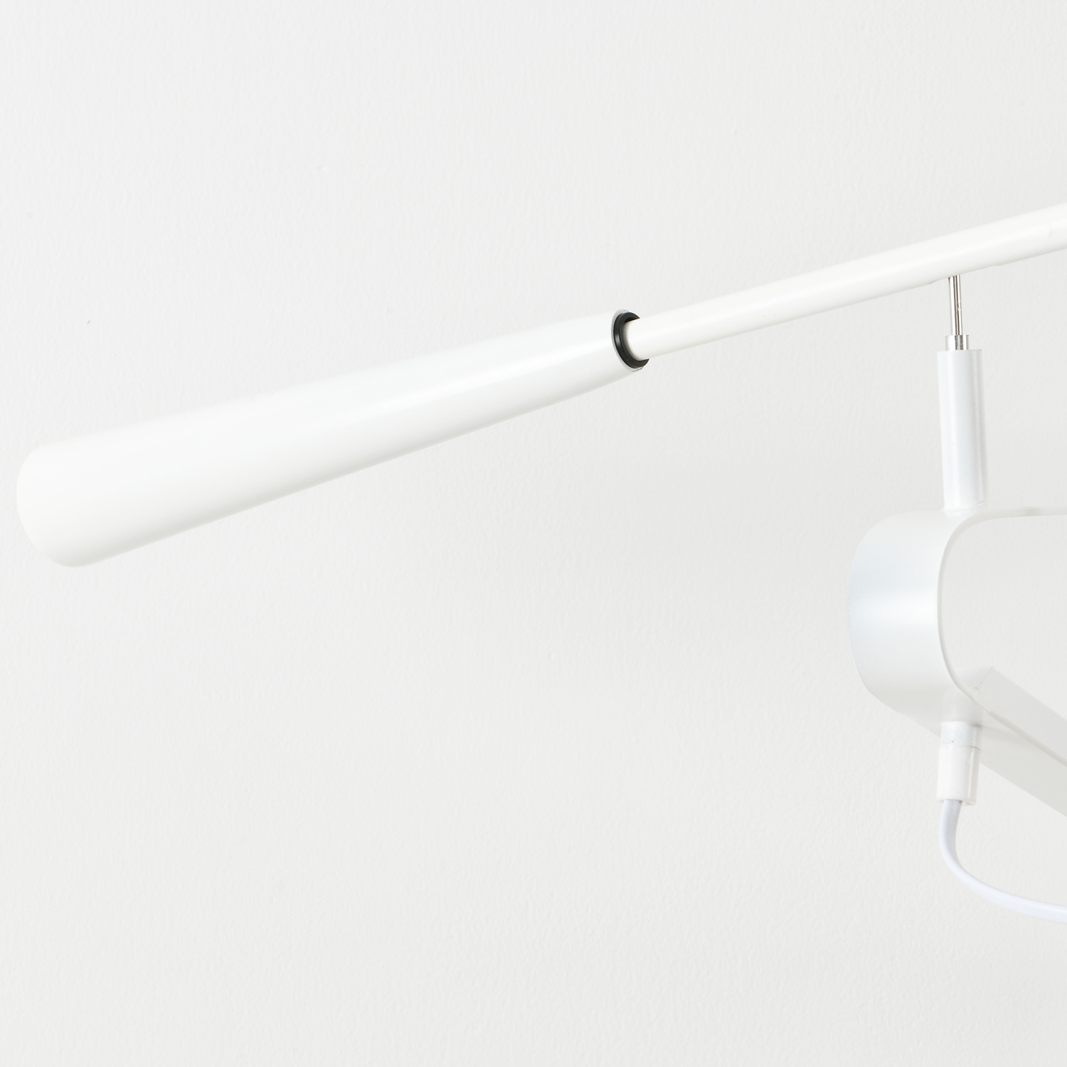 Lampa ścienna MOVE S wykonana z metalu w kolorze białym posiada ruchome ramię które można regulować w wielu płaszczyznach.