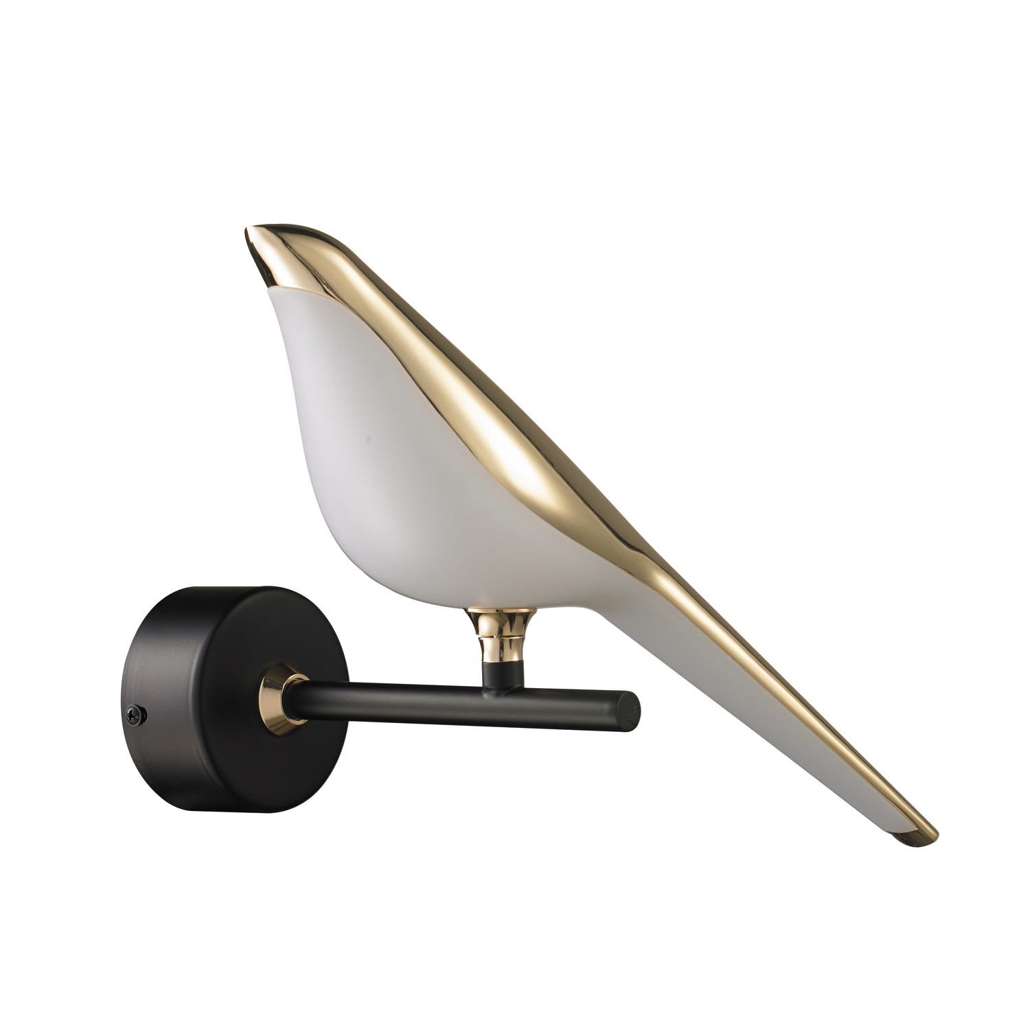 Lampa ścienna z kolekcji TIT w kształcie ptaka osadzonego na metalowym ramieniu.