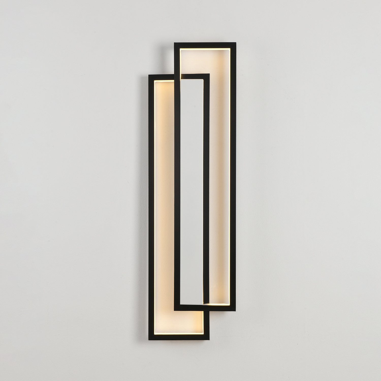 Linie kinkietu są proste i tworzą wyraźne geometryczne kształty.