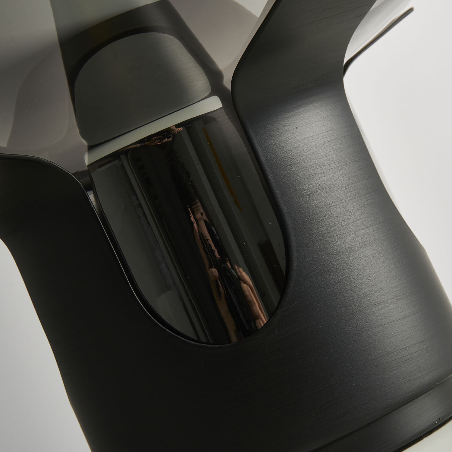 Klosz z przydymionego szkła rozprasza światło, tworząc przyjemną i relaksującą atmosferę. Dzięki temu lampa doskonale sprawdzi się zarówno w salonie, sypialni, jak i gabinecie. Przyciemnione szkło dodaje lampie tajemniczości i sprawia, że staje się ona centralnym punktem każdego pomieszczenia.
