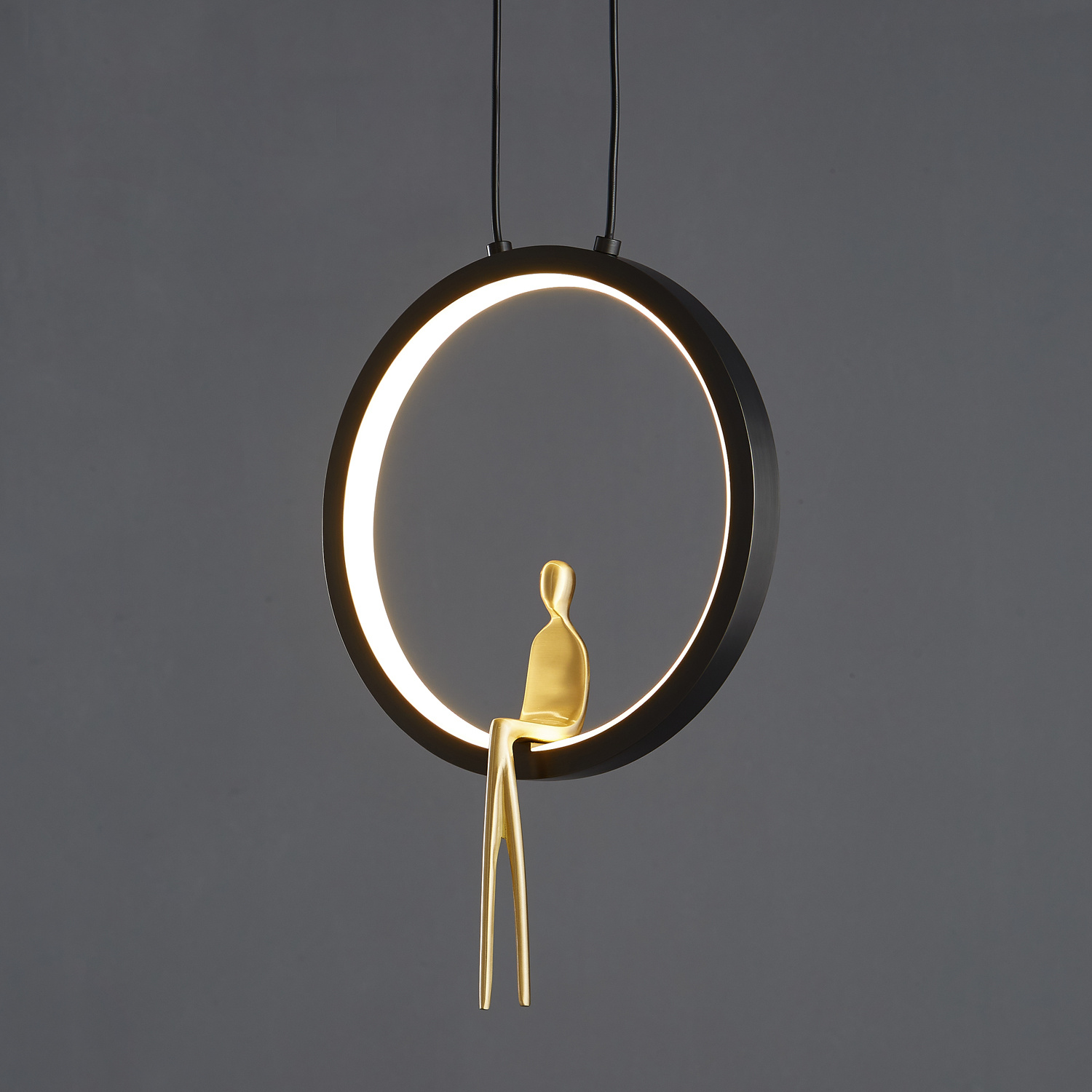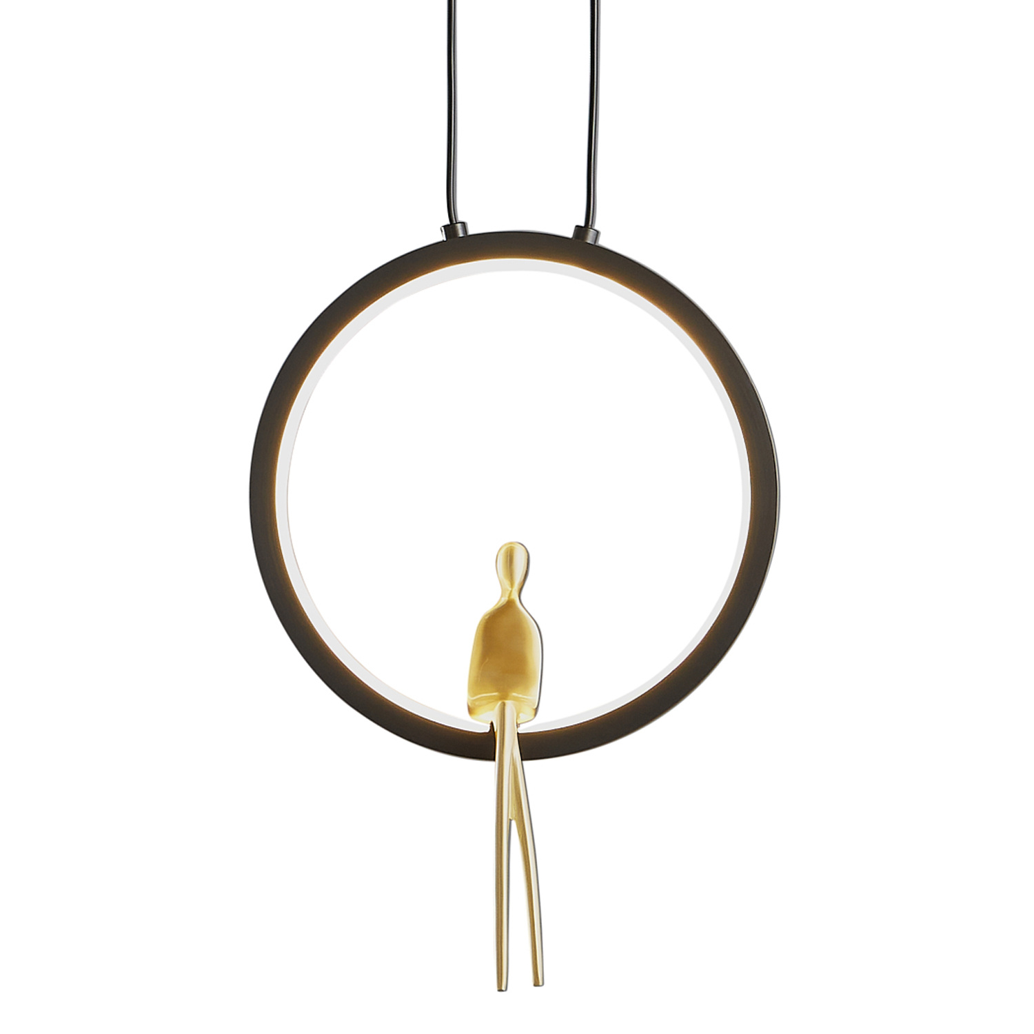 Lampa wisząca AMICI w kształcie pierścienia/okręgu wykonana została w całości ze szczotkowanego mosiądzu w dwóch kolorach: złotym i czarnym.