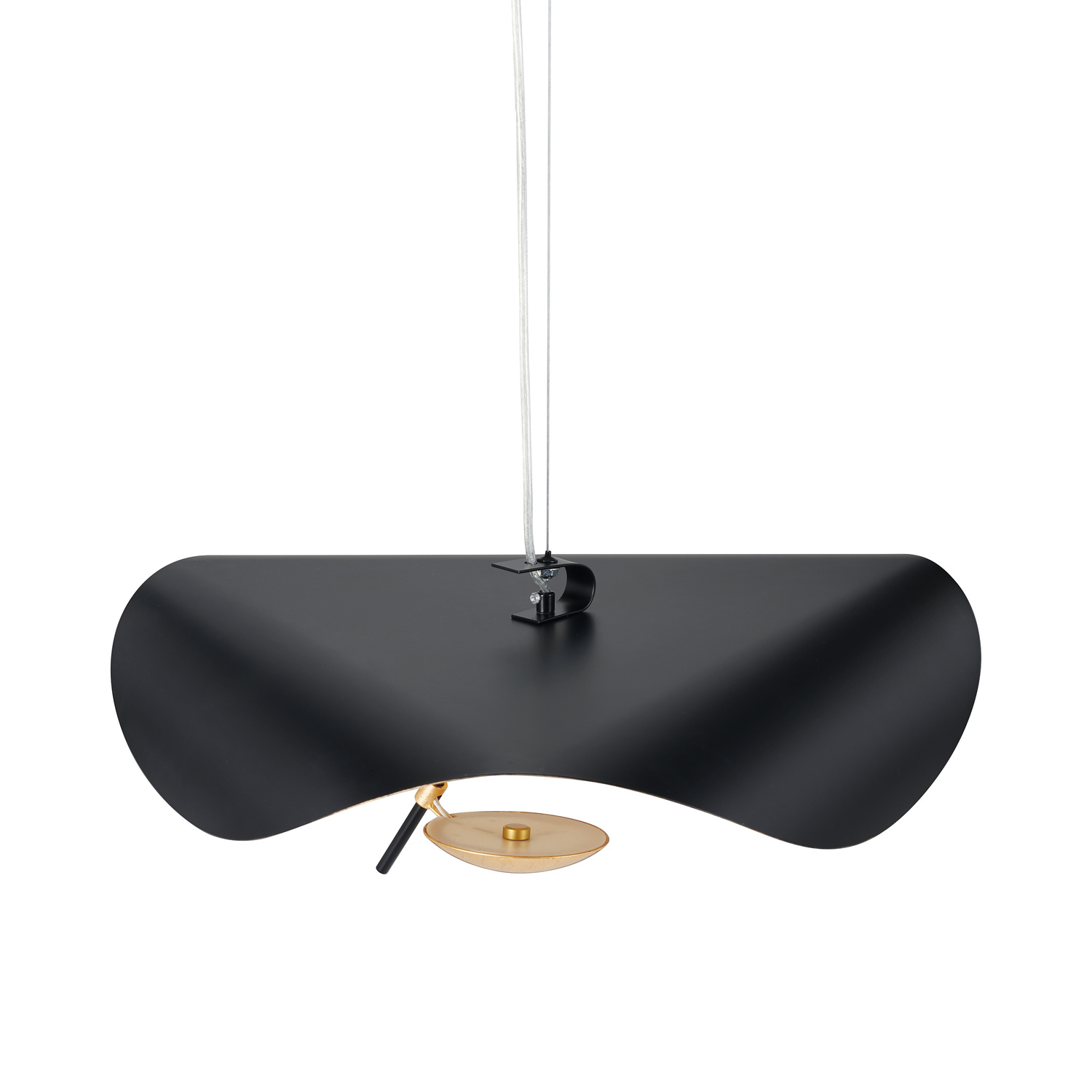 Rzeźbiarska forma lampy ENIGMA na zewnątrz pokryta jest czarnym matowym kolorem, wnętrze wypełnia złota powłoka, która nadaje lampie wysublimowanego charakteru.