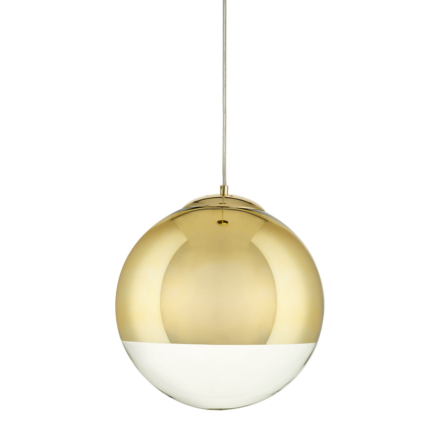 Lampa wisząca FLASH wykonana jest ze szkła, ma kształt kuli podzielonej na dwie części.
