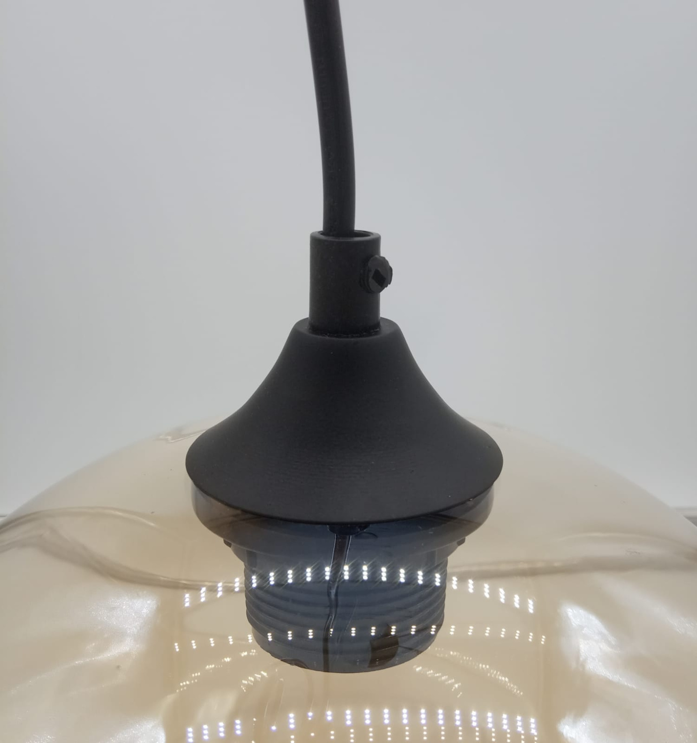 Szklany klosz w bursztynowym kolorze jest półprzezroczysty, dzięki temu uwydatnione jest źródło światła.