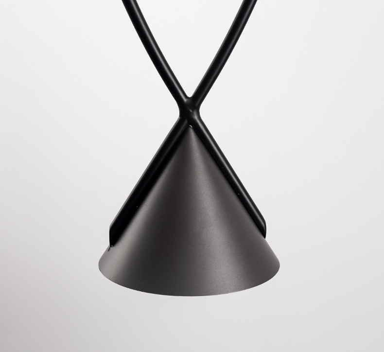 Lampa MIA wyposażona jest w subtelne przewody w kolorze czarnym, które łączą się w prostokątnej podsufitce.