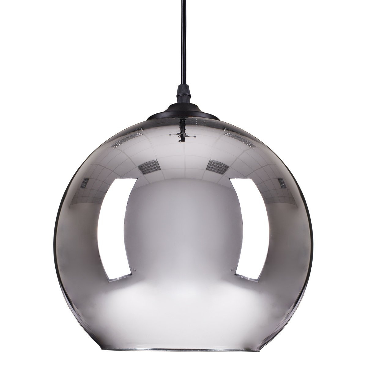 Klosz wykonany z polerowanego barwionego szkła w kolorze chromu zachwyca lśniącą lustrzaną powłoką.