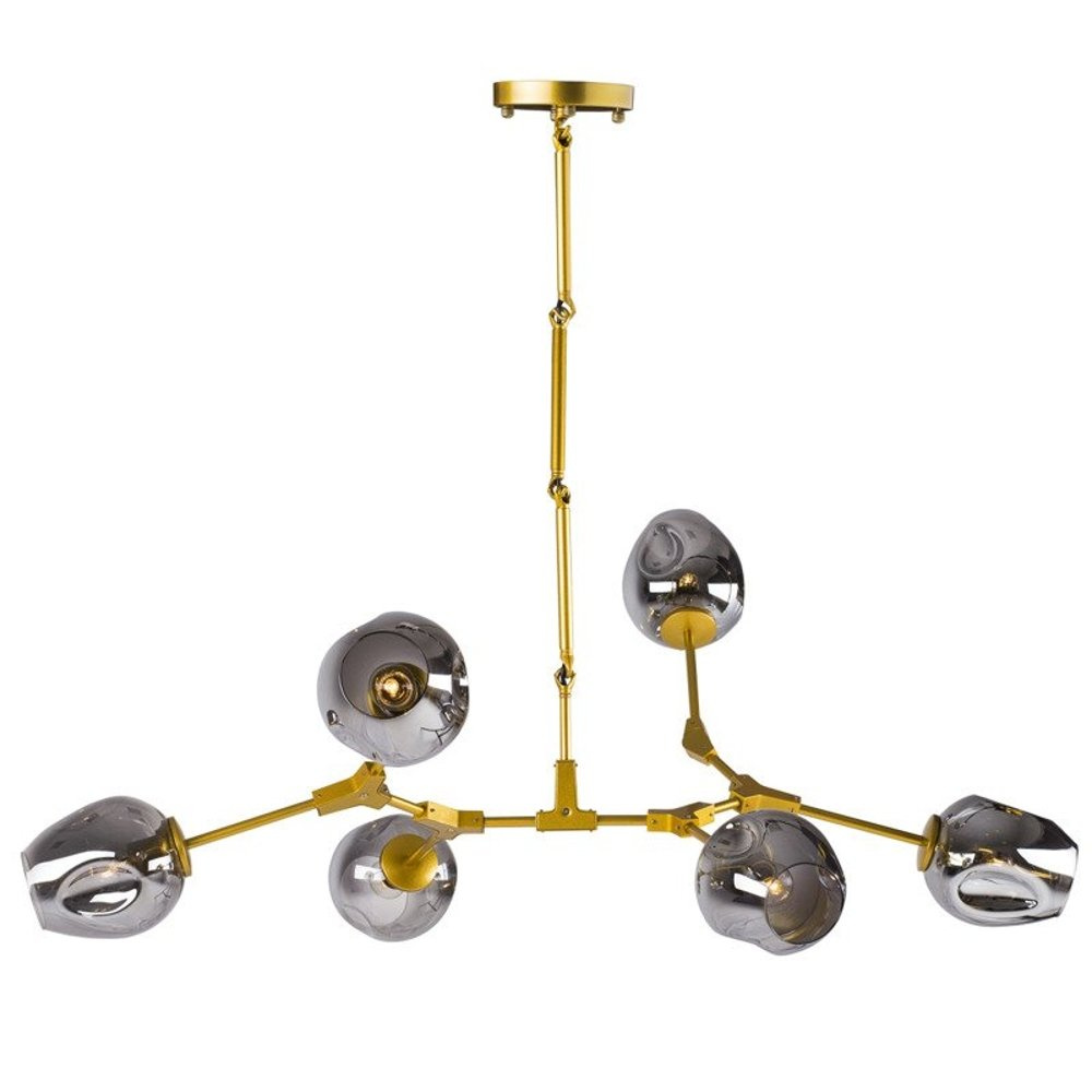 Ta oryginalna konstrukcja o sześciu szklanych,przydymionych kloszach, pozwala osiągać niebanalne aranżacje, dając rozproszone światło w efektowny sposób.