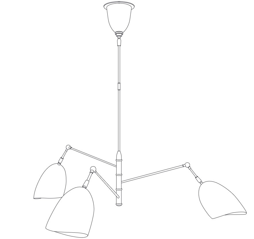 Ramiona: Trzy długie, metalowe ramiona wychodzące z centralnej części. Ramiona są regulowane dając możliwość zmiany kąta ustawienia kloszy.