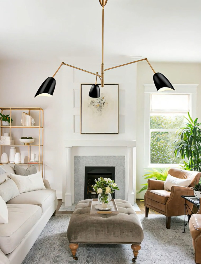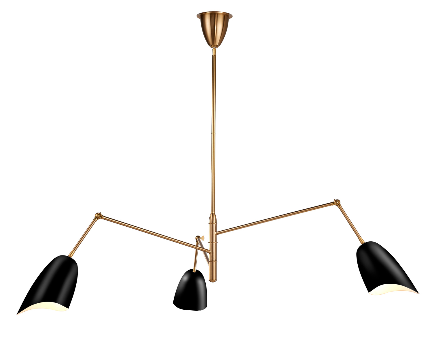 Jej regulowane ramiona pozwalają na dostosowanie kierunku światła do potrzeb pomieszczenia. Kontrast między czernią a złotem dodaje jej elegancji.